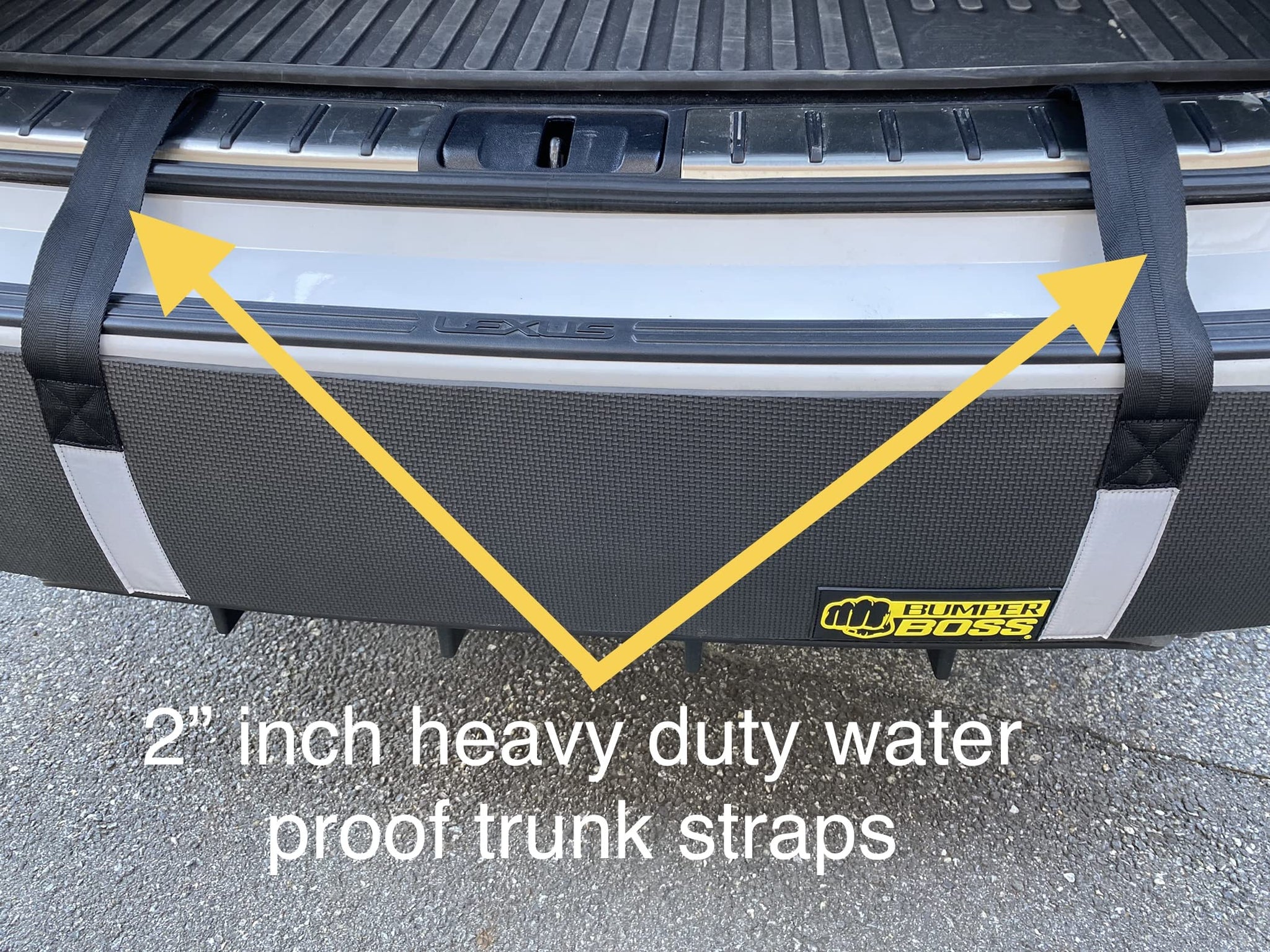 Details: The all-new BumperBoss is designed to maximize the protective range and cover your WHOLE bumper, not just the center. It’s got your corners covered too! protect the full width of your bumper, not just the middle, including the corners! Long gone are the times of leaving your bumpers susceptible to careless parkers and bad drivers, protect yourself with the boss, BumperBoss. Made from a soft yet durable water-repelling tech-foam, it’s flexible enough to wrap around and highlight the contours of your bumper. The outer face of the BumperBoss is textured to maximize scuff resistance, while the back is soft and smooth, making cleaning and maintenance super simple. Give your BumperBoss a custom fit by adjusting the straps the first time you use it and then roll-and-go to store it in mere seconds! BumperBoss provides maximum protection for your bumpers and maximum trunk space for your needs, it conveniently rolls up for compact storage inside your trunk when not in use.