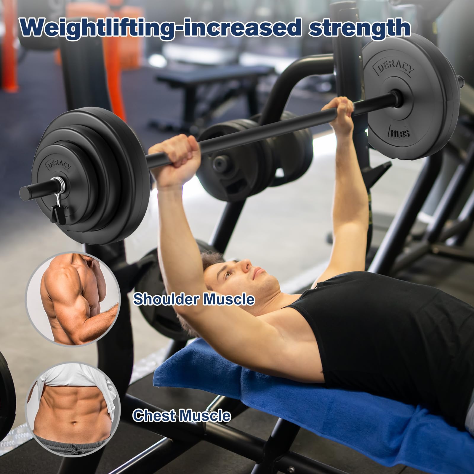 Yaheetech Barbell Weight Set - Olympic Curl Bar & 6 Olympic Weights & 2 Olympic Barbell Clamps for Lifts 55LB