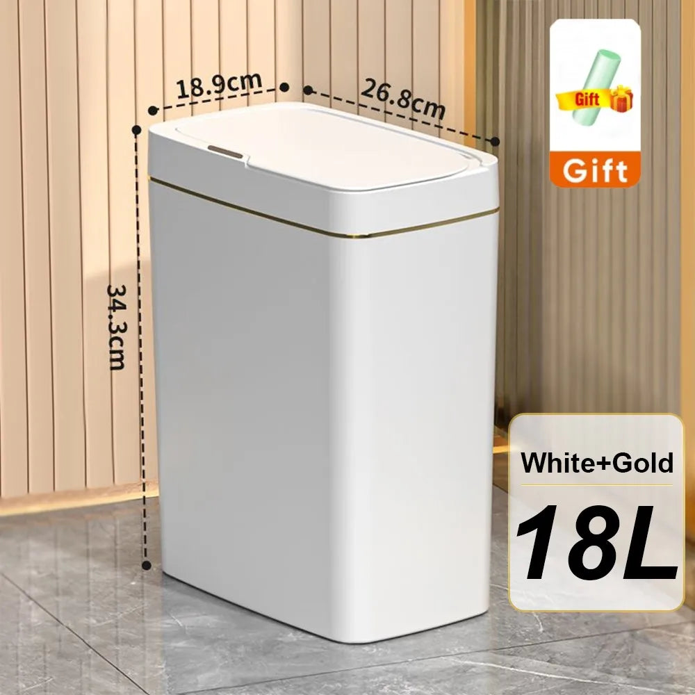 Simplify your bathroom routine with our 15/18L Bathroom Smart Sensor Trash Can Garbage Bucket. This intelligent trash can is designed to make waste disposal effortless and mess-free. The innovative sensor technology detects motion to open the lid automatically, making it convenient and hygienic to use. With a large capacity and a sleek, modern look, this trash can is a practical and stylish addition to any bathroom. Say goodbye to traditional trash cans and hello to a smarter solution for your waste disposal needs.