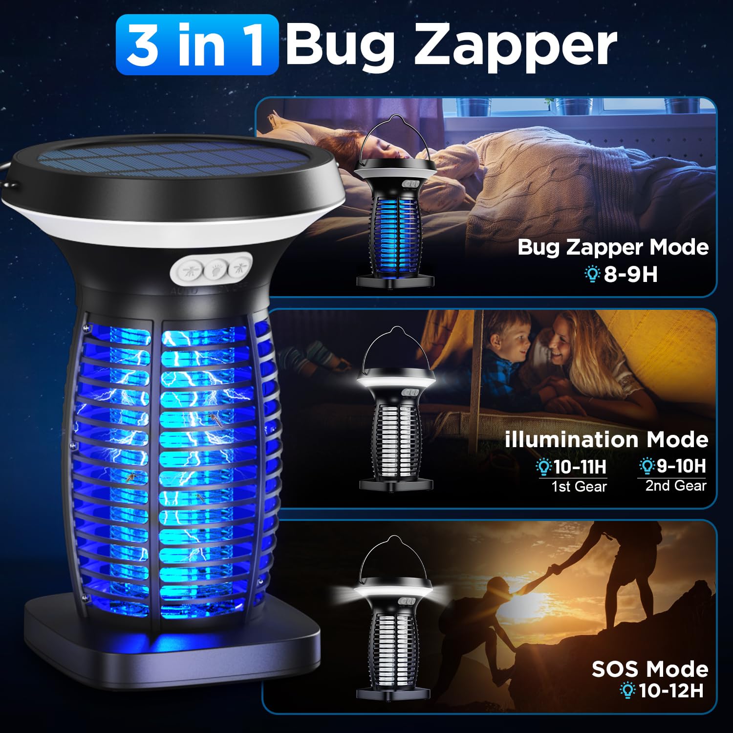 Details: ZECHUAN Solar Bug Zapper Outdoor Waterproof, Portable Pest Control Electric Mosquito Zapper Killer with Panel Sensor, Rechargeable Insect Trap Fly Zapper for Home, Patio, Backyard, Camping