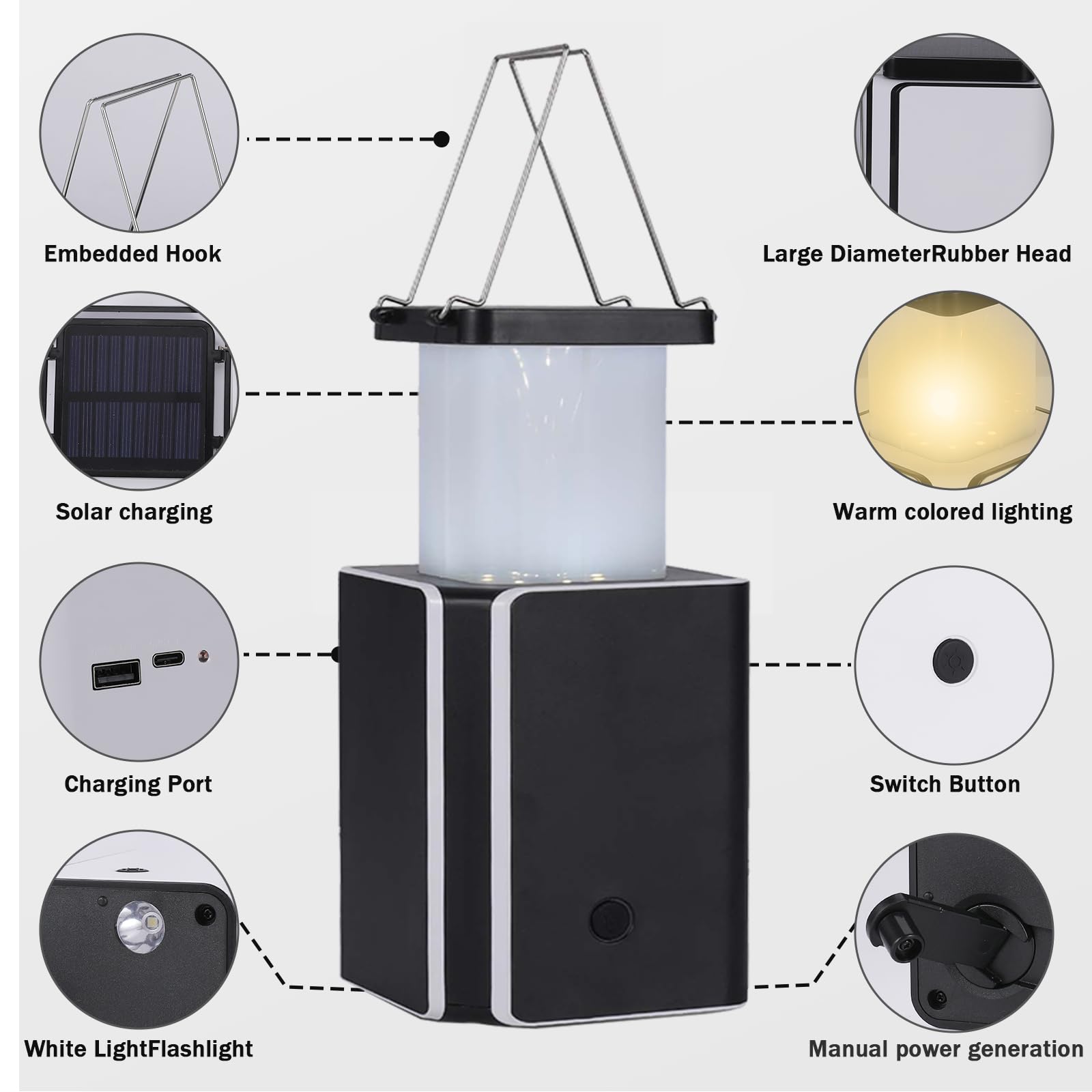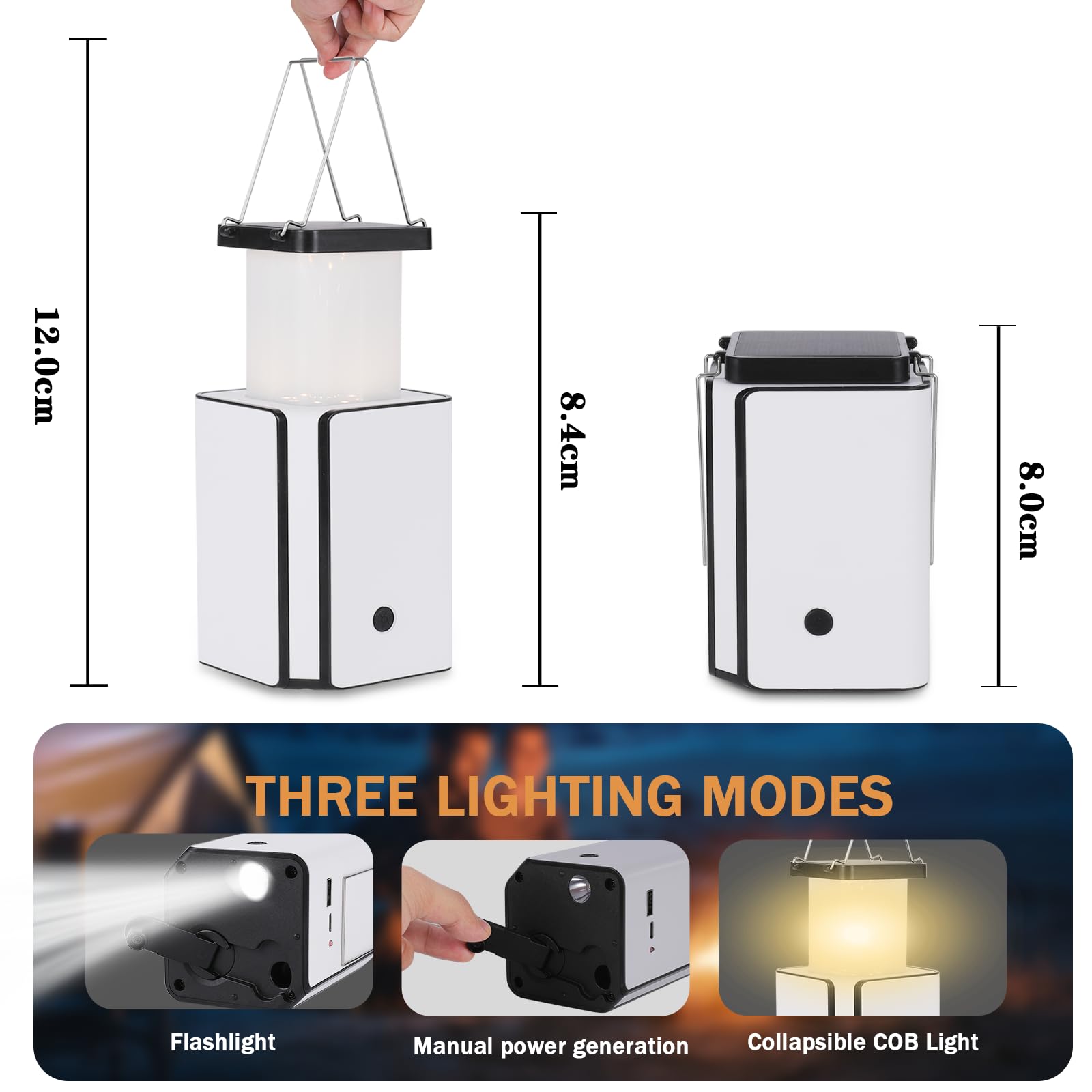 Details: Solar LED rechargeable emergency Camping Lantern, Solar rechargeable, rechargeable type C, Emergency Lights hand-crank power generation,mobile power function to mobile phone power supply, emergency lights, flashlights, SOS warning lights.