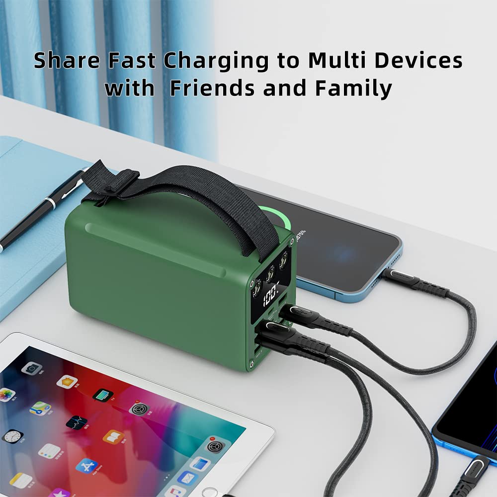 • 【60000mAh High Capacity 】:A single charging for weeks use ,suitable for business travel ,hiking ,camping or going out . 60000mAh power bank can charge to multi devices : 15 times for Iphone 13 ,14 times for Iphone 11,11 times for Samsung S20 and 6 time for iPad Air 2 . It it also working to Macbook Pro (20W Power Delivery ) with USB-C to C cable