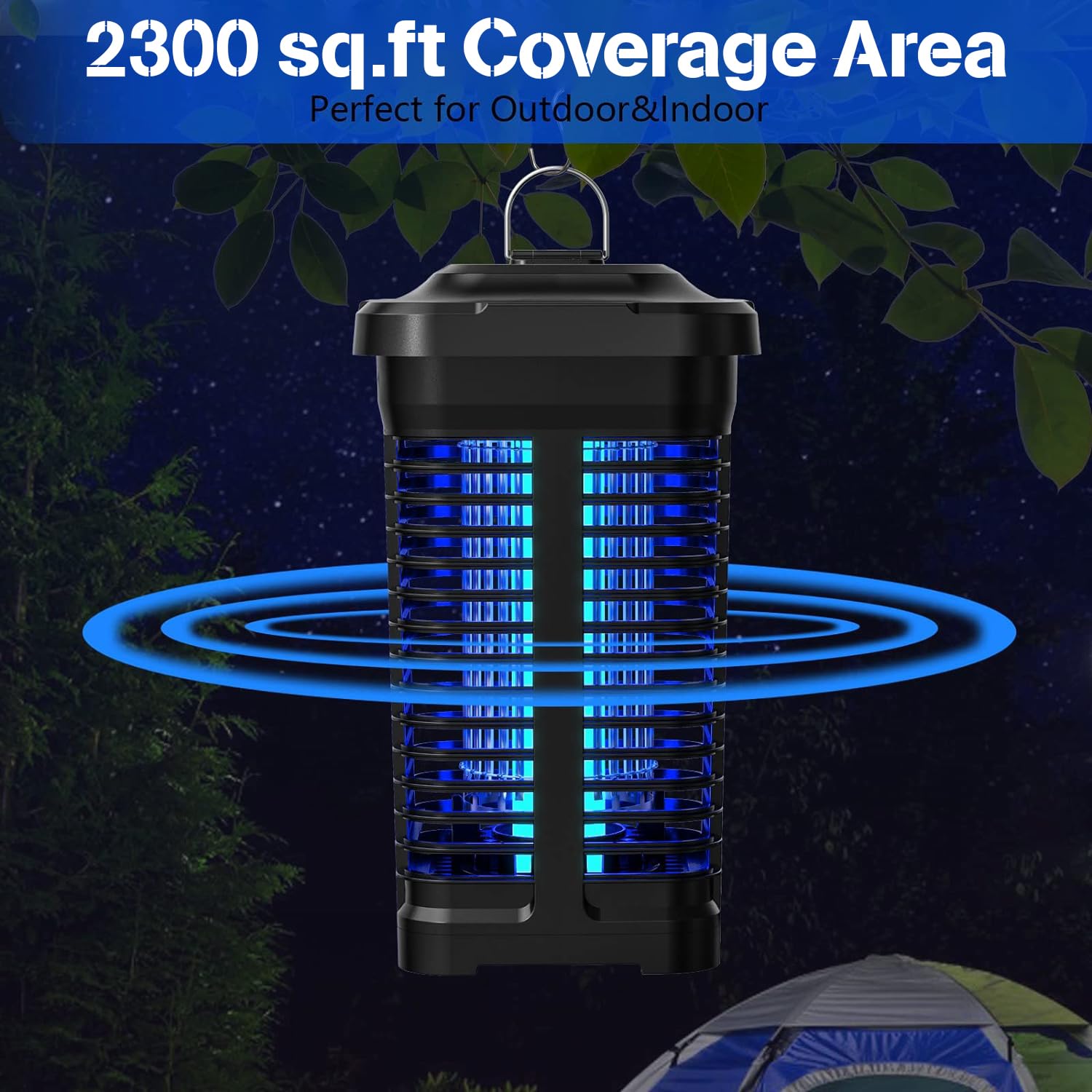 - 【18W UV Light Attraction】The 18W mosquito light emits 365mm visible violet light, attracting bugs within a 2300 sq.ft area. This feature makes the mosquito zapper perfect for both indoor and outdoor use, including patios, garages, decks, lawns, gardens, balconies, living rooms, and more.