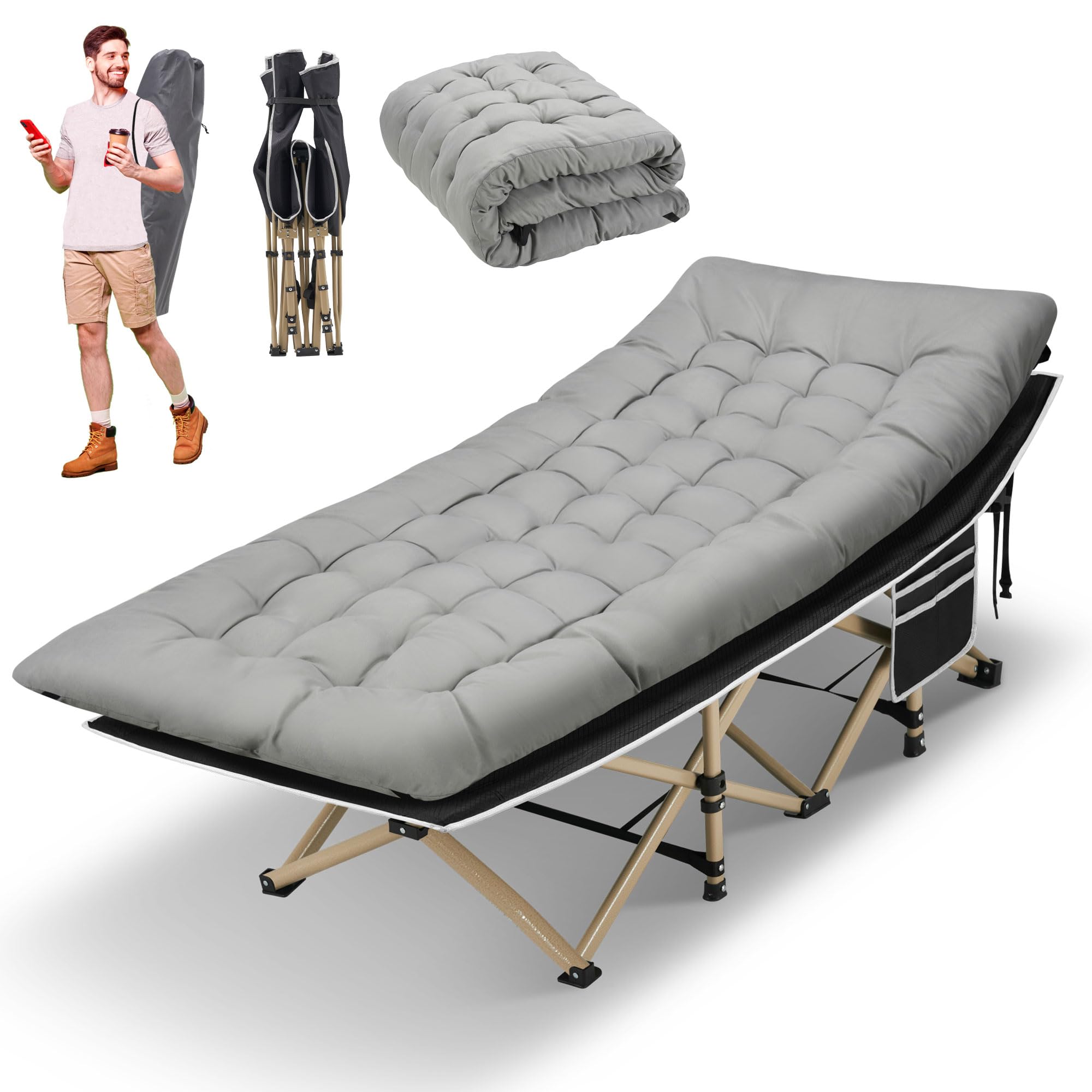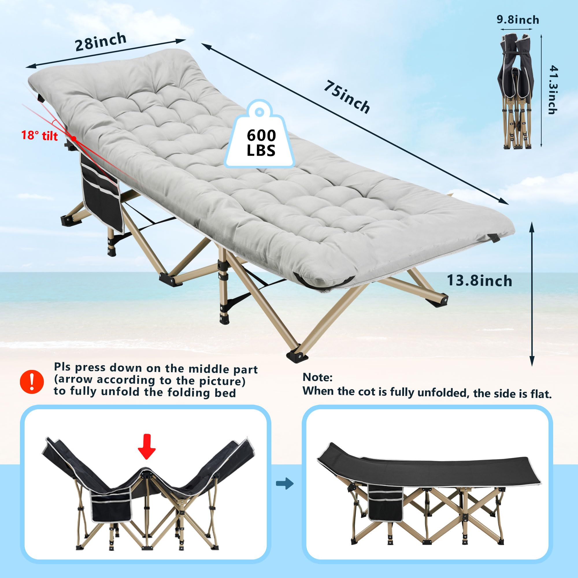 - Folding Bed with Mattress: For the most comfortable sleep experience, our sleeping cot deigns with a 2.5-3 inch thick, skin-friendly, material-split mattress. Note: The mattress is removable so you can take it off when it gets too hot.