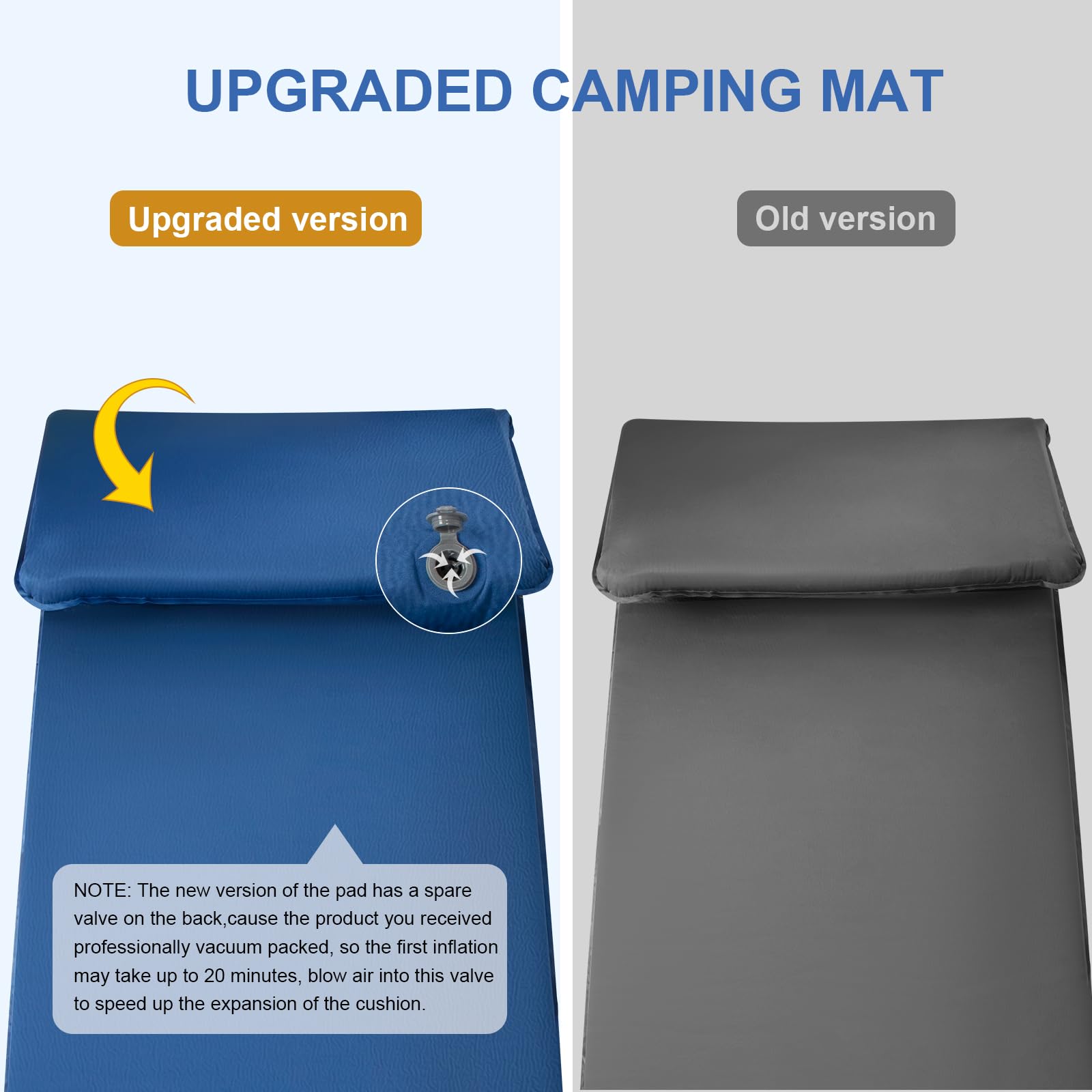 - Upgraded Valves for Fast Storage: To make camping sleeping pad storage easier, we designed a dual-use valve. well, open the two layers for self-inflating when inflating, however, you need just open the first layer and be sure keep the second layer closed when deflating, in this state, the air only go out but not in, so you storage the pad easier just squeeze out the air.