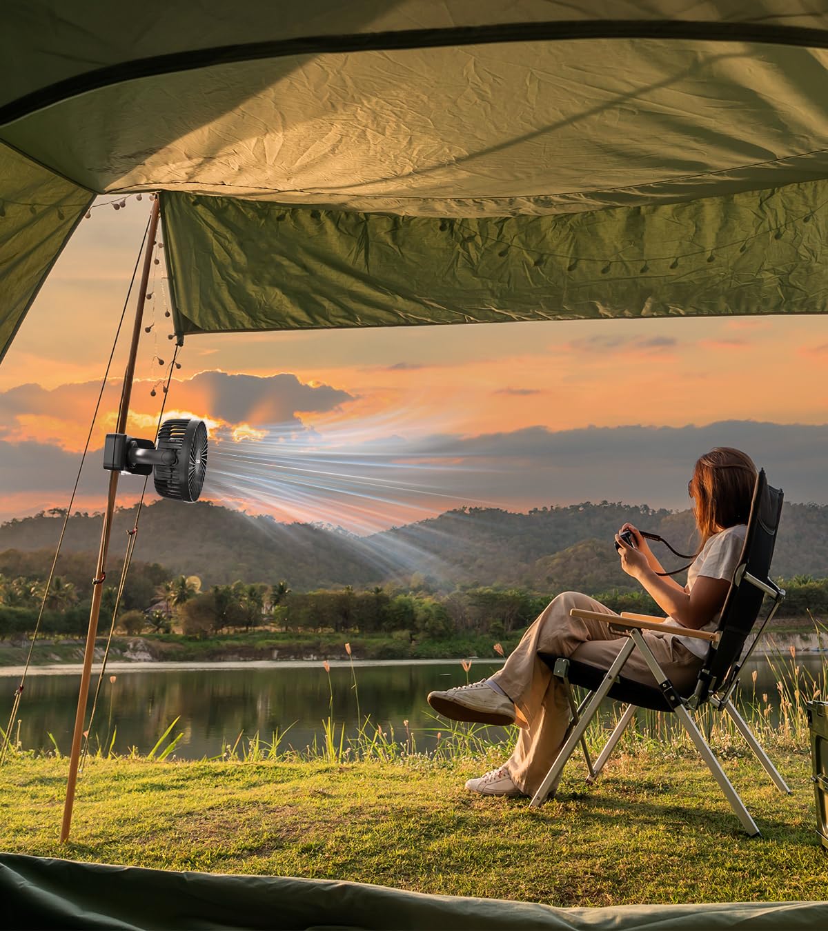 - 【Strong Grip Clamp & Hook Design】— Easily clip on any surface, even running upside down and also can be adjusted to cool every direction. This camping fan is equipped with easy-to-open clamp, which can clip on surface upto 3 inches thickness. Clipping on stroller or hanging on tents with humanized hook design keeps your baby and you cool and cozy. This portable fan with 360 angle rotation, breezes quickly coolly whatever vertical or horizontal. Extremely convenient and practical.