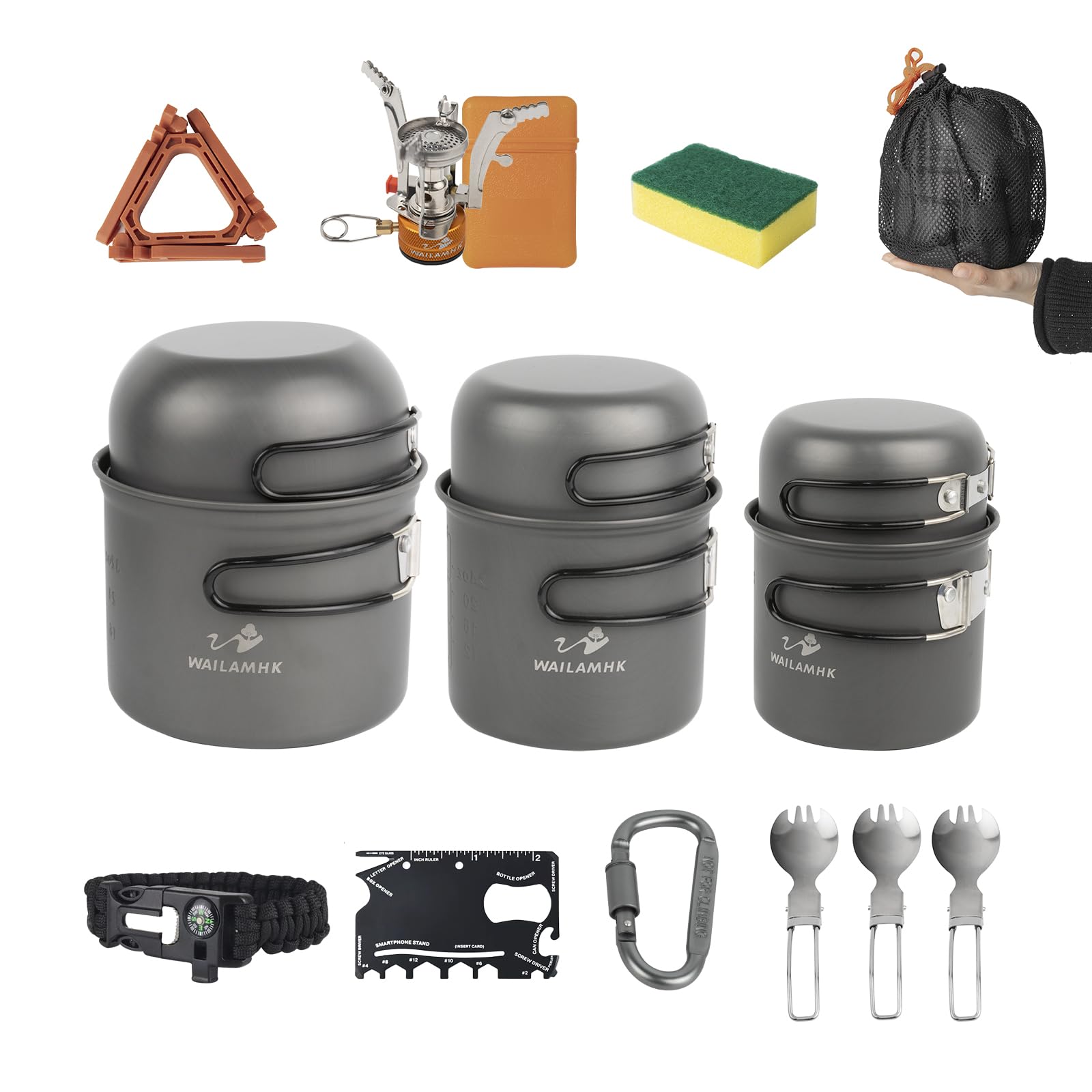 - Compact & Portable: Thoughtfully engineered to nest together neatly, all 16 pieces fit into a single bag for compact storage, making it incredibly lightweight and easy to carry. Perfect for backpacking, camping, and travel, this set ensures you have all the essential cooking tools without the bulk.