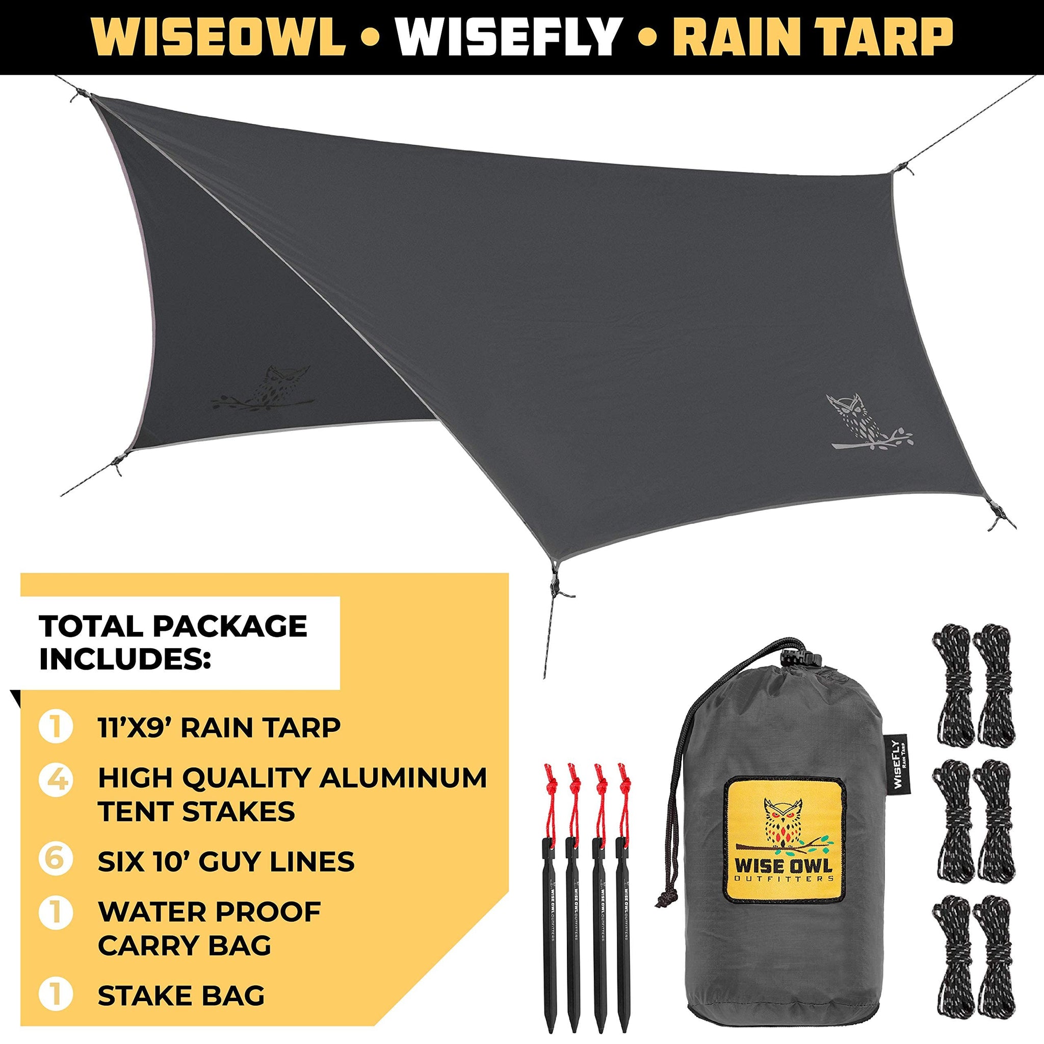 - Portable: Packed in a convenient waterproof carrying bag, our rain tarp can be taken anywhere - from backpacking to boating. Our Hammock Tarp is 11 ft long by 9 ft wide and 26 oz (our Lite version weighs only 18.9 oz!), the perfect size to cover your camping hammock
