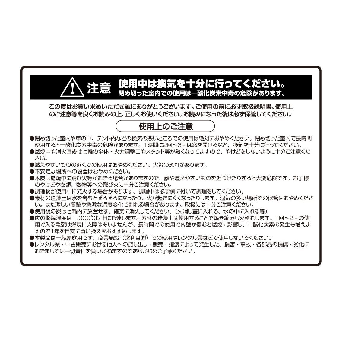 - Enjoy the delicious taste of charcoal fire. Diatomaceous earth with excellent insulation and heat retention. Far infrared generation rate is also high and thermal efficient, so fuel can be maintained and economical. Includes air window for adjustable firepower. Comes with a stand, so it can be used on a tabletop for easy transportation. The main unit will not come off from the stand. Do not use in indoors, in tents, or in places with poor ventilation. Monoxide poisoning, acid deficiency, and fire. The unit will not come off from the stand. This product focuses on storage and portability for outdoor leisure. Avoid frequent use such as permanent and daily use