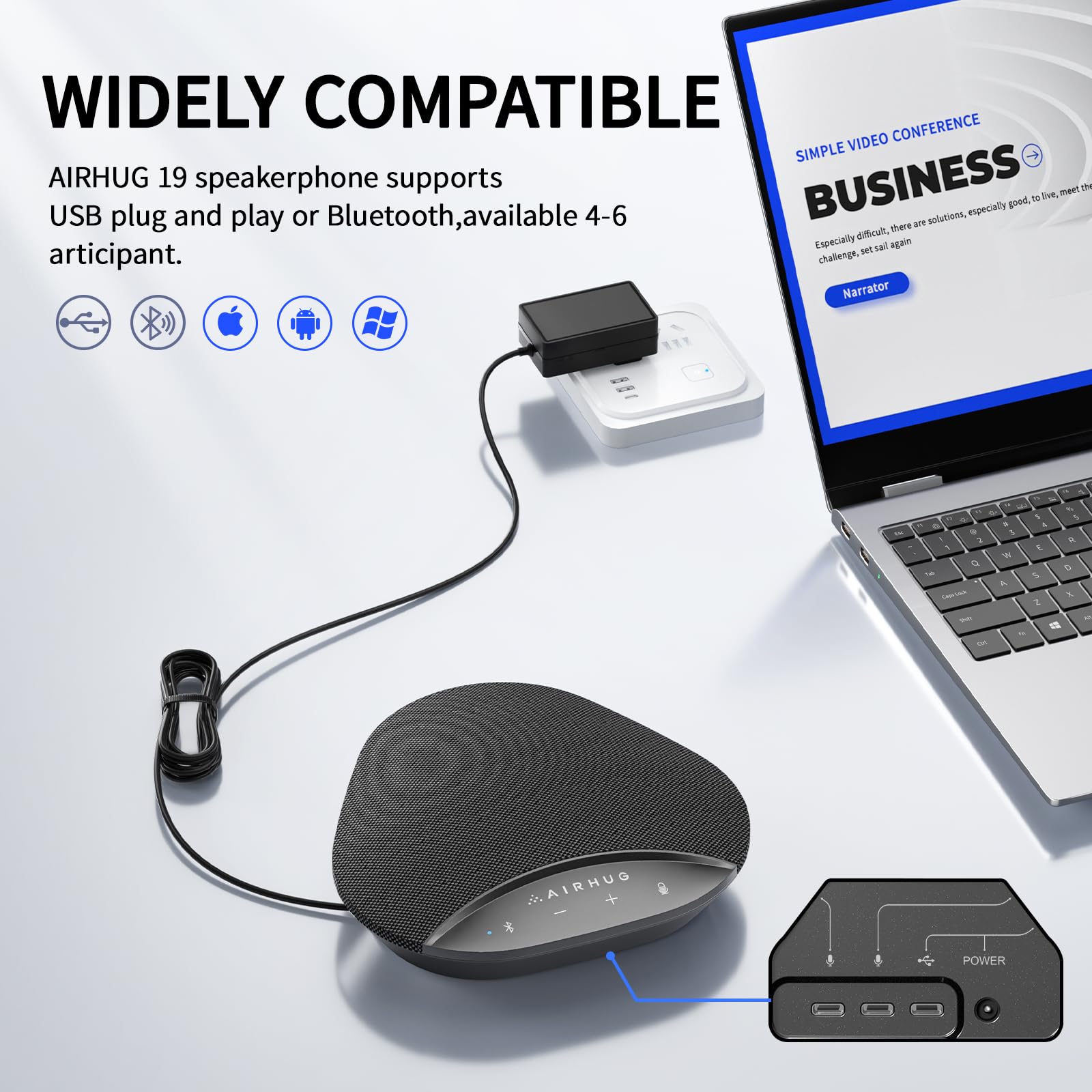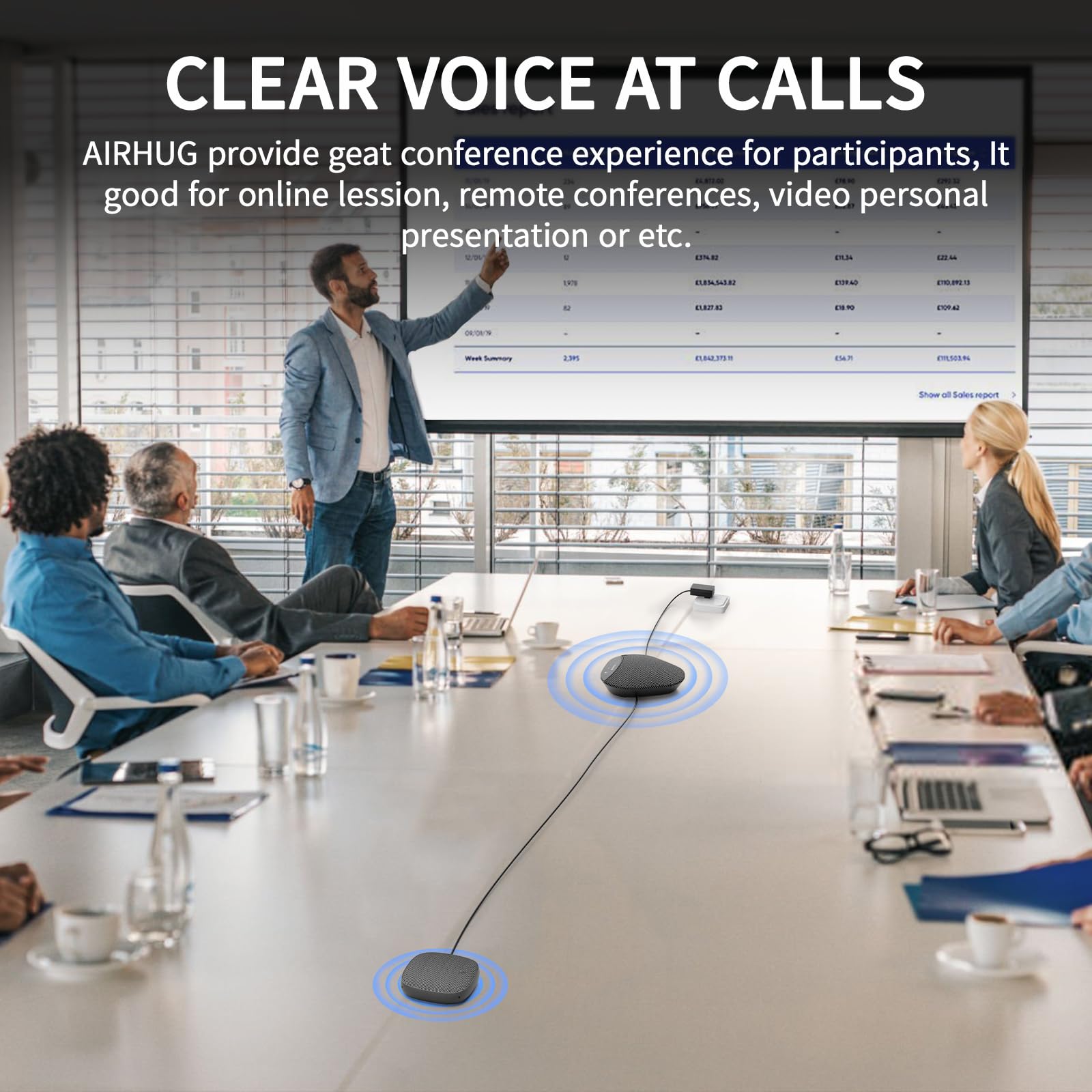 2-in-1 Conference Speaker and Microphone, Daisy Chain Wireless Bluetooth Speakerphone with 360° omnidirectional mics