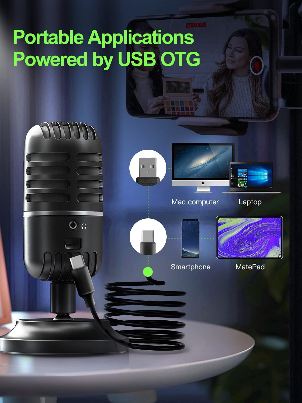 USB Microphone, EMP Desktop Condenser PC Microphones for Steaming Podcast Mic Recording Gaming Zoom Meeting YouTube