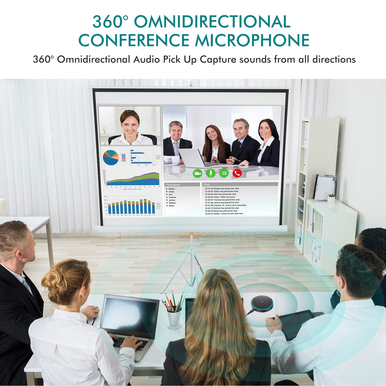 Conference Speaker and Microphone, 2pk Bundle Conference Microphone w/Daisy Chain, 360° Voice Pickup