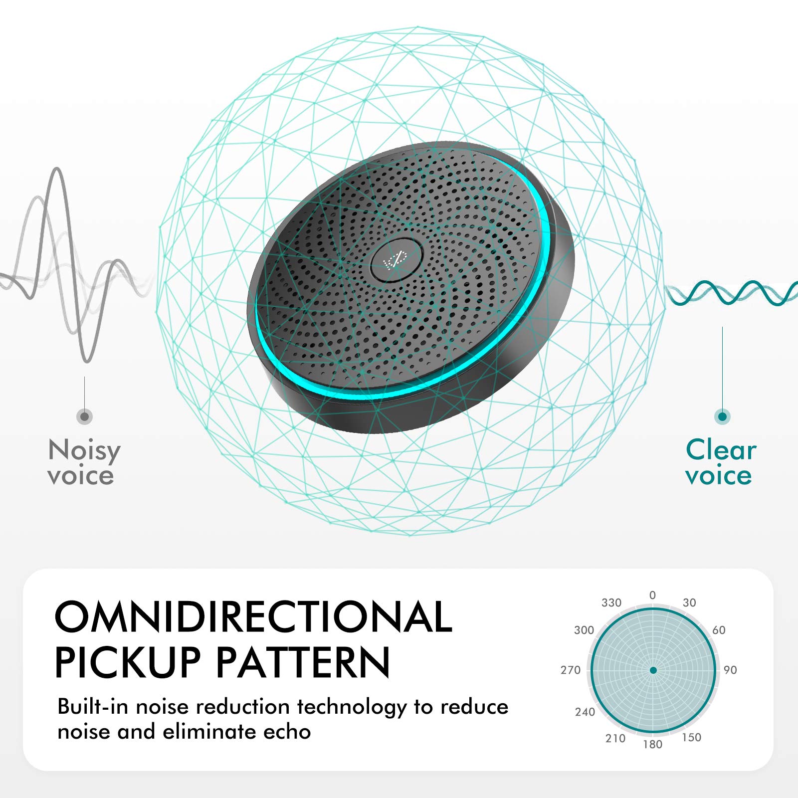 2-in-1 Conference Speaker and Microphone, Daisy Chain Wireless Bluetooth Speakerphone with 360° omnidirectional mics