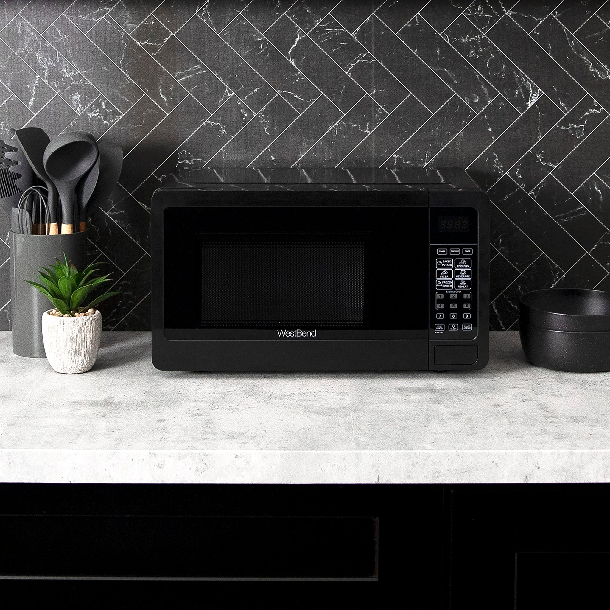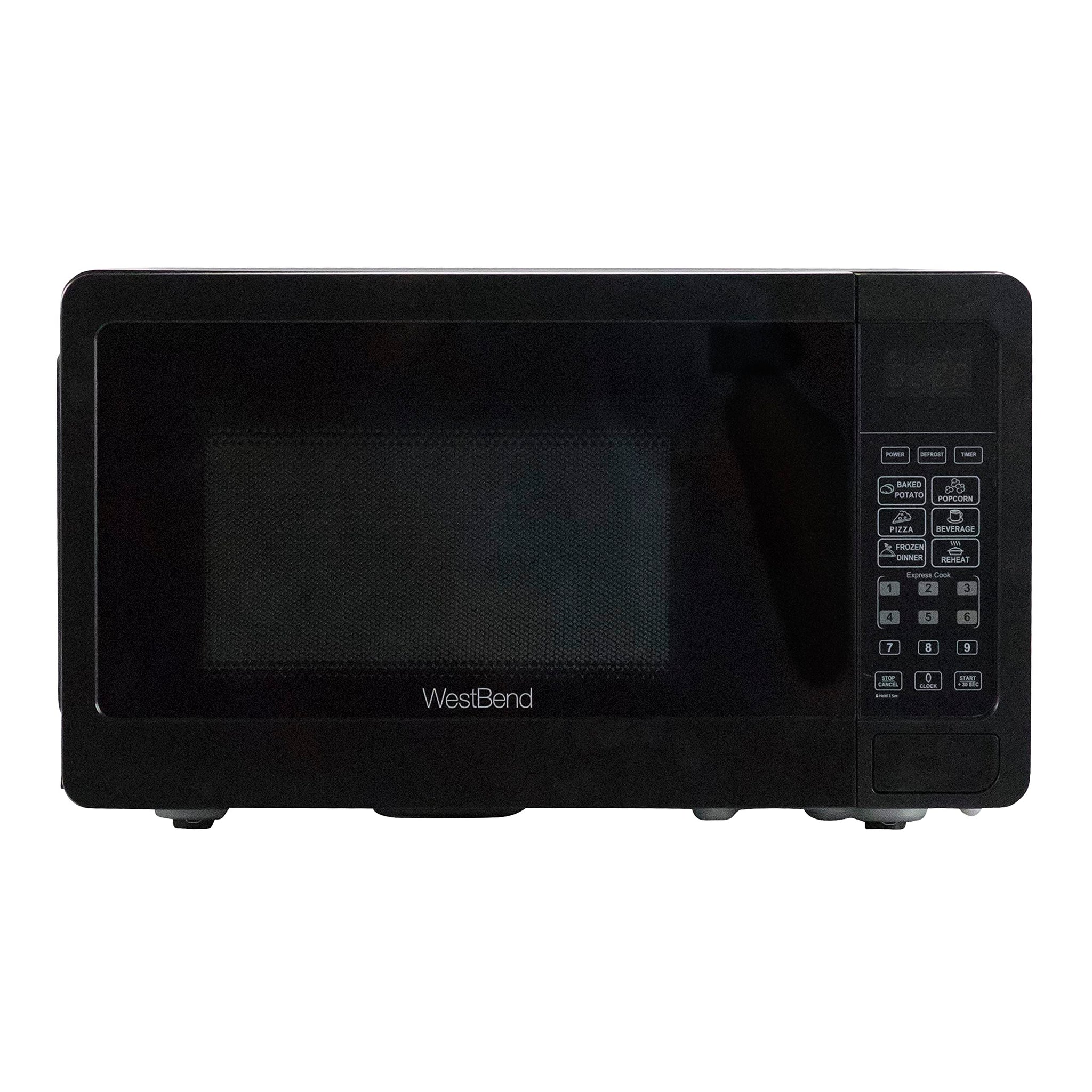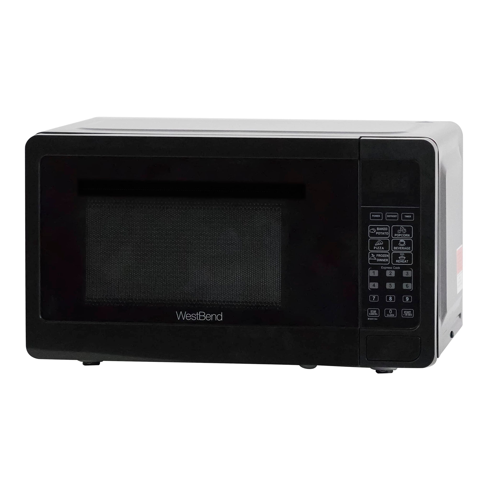 Details: Save counter space with this compact, 0.7 cubic foot and stainless steel microwave oven from West Bend. The perfect countertop microwave for the dorm, man cave, office, studio apartment, RV, tiny home, rental room, condo, vacation home, or anywhere you need to cook food fast. This small microwave features 700 Watts of cooking power, an electronic control panel, 6 pre-set cooking settings (baked potato, popcorn, pizza, beverage, frozen dinner, reheat), and a removable glass turntable all in its compact footprint that fits perfectly on the countertop.