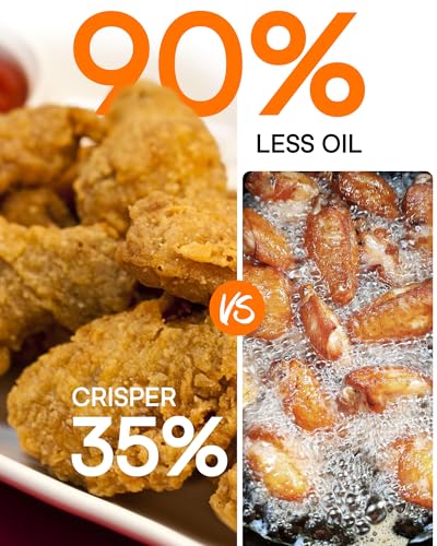 - POWERFUL CONVECTION FAN & SMOKELESS – Brio is an air fryer oven with a powerful 5-inch convection fan. It’s top mounted and promotes unrivaled cyclonic convection circulation for fast, even, extra-crispy cooking while remaining smokeless, saving you precious time in the kitchen.