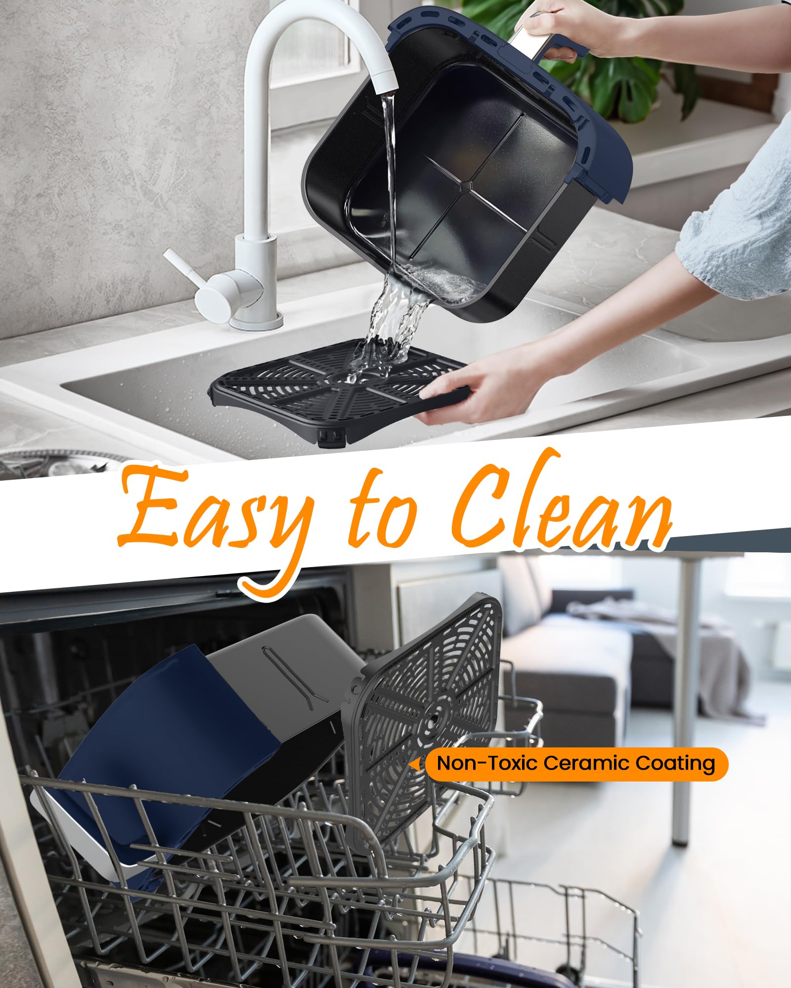 • 100% Non-Toxic & Odor-Free Design: Cook with complete confidence! The Brio Plus 7QT air fryer features a 360° all-metal interior, ensuring your food never comes into contact with heated plastic. This eliminates any chance of odors or chemical fumes seeping into your food, delivering pure, and delicious flavor every time.