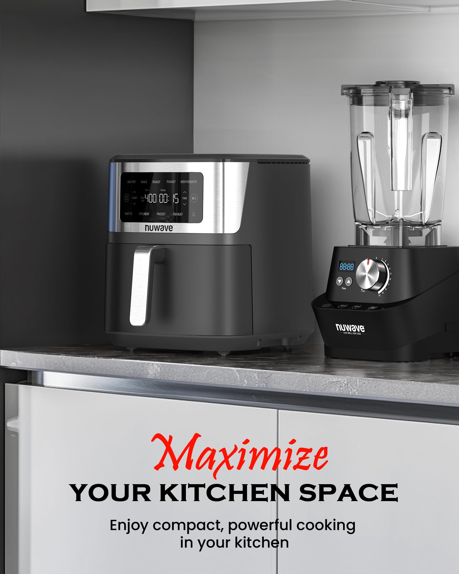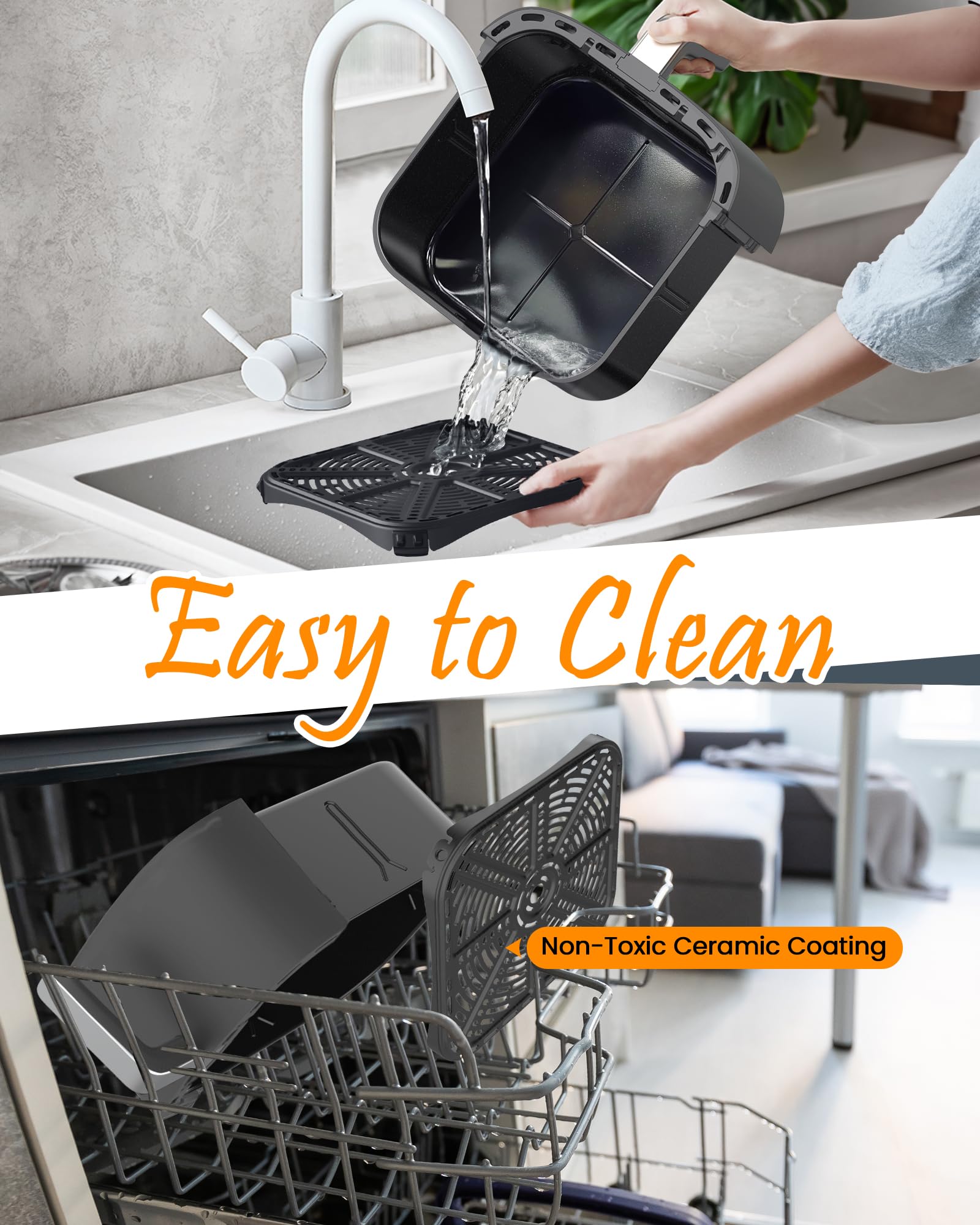 • 100% PFAS-Free Ceramic Coating: NUWAVE 7QT Brio Plus air fryer’s dual-layer ceramic basket is PFAS-free, using TÜV-tested Duralon Blue G10 ceramic coating that contains no 106 known PFAS chemicals. Unlike many baskets coated with Teflon, which can decompose above 392°F and release harmful gases, Brio’s durable ceramic surface is built to last — no peeling, no toxins, just healthy cooking and easy cleanup.