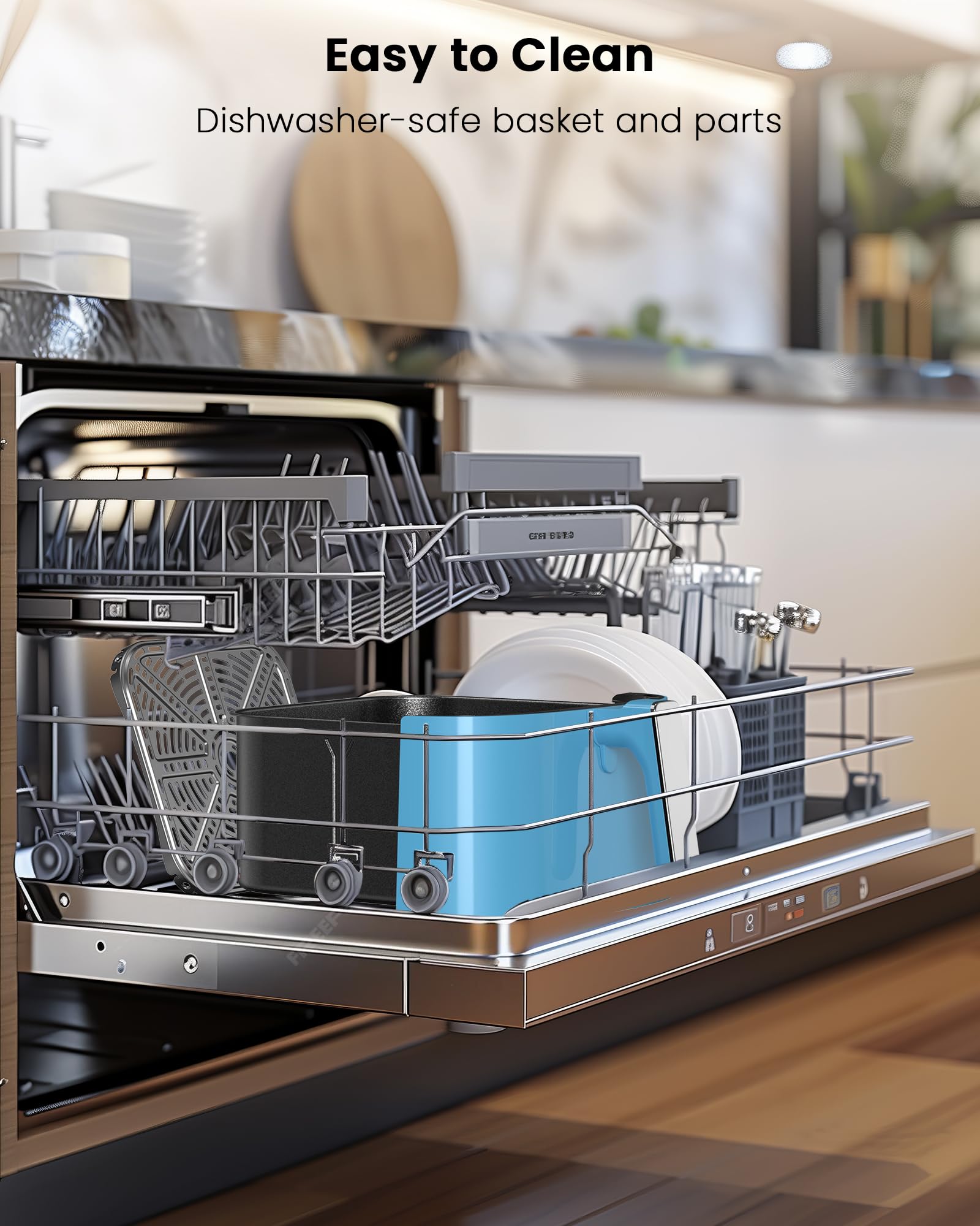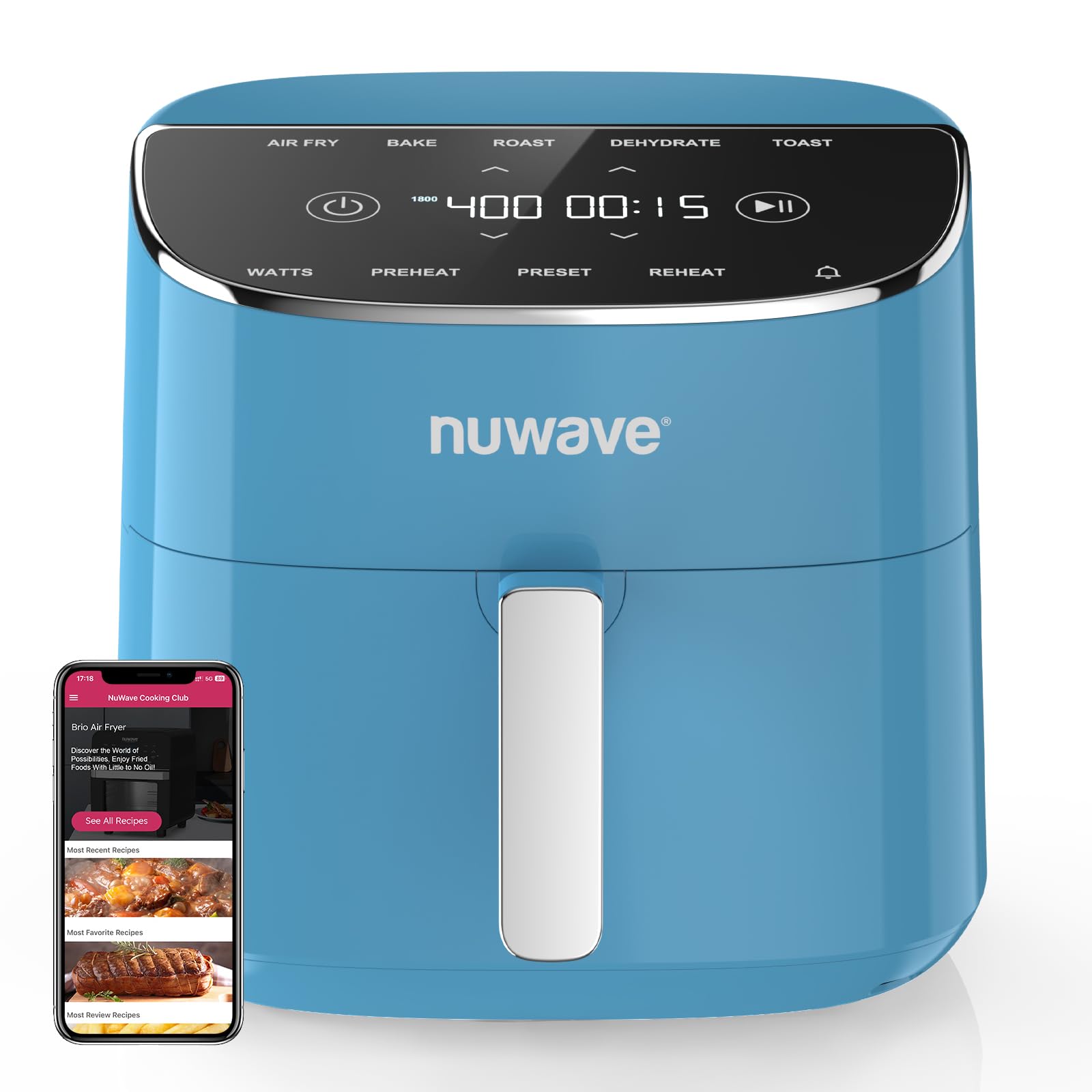 Nuwave Brio Plus Air Fryer 8 Qt, New & Improved, PFAS-FREE, 7 Digital One-Touch Cook Functions that AIR FRY, BAKE, ROAST, DEHYDRATE, TOAST, REHEAT, PREHEAT, 150 Presets, 50°F~400°F (Cozy Blue)