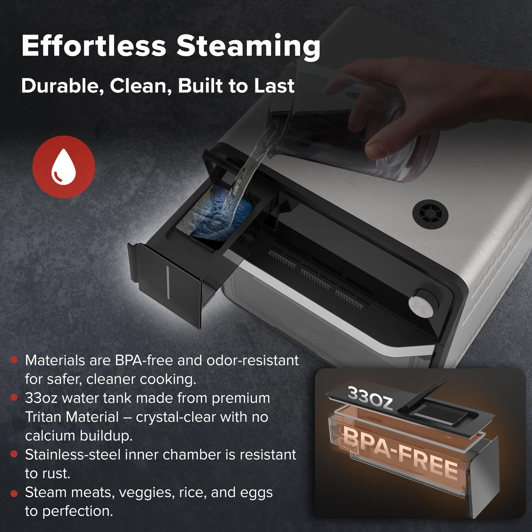 • GENEROUS FAMILY-SIZED CAPACITY – With 16-quart capacity, you can cook a 5 lb roast, toast 4 slices of bread, or prepare meals for the whole family — all while the Steam Oven fits comfortably on your countertop.