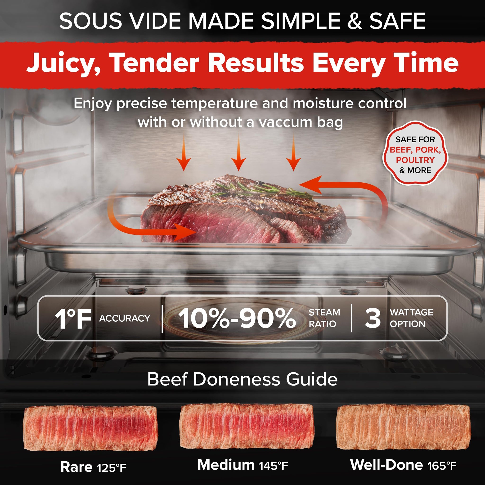 • NO BAGS, NO WATER BATHS – Experience sous vide tenderness without the hassle. Cook with hot air and moisture, creating perfectly even textures and juicy results, all without the need for plastic bags or a separate water bath.
