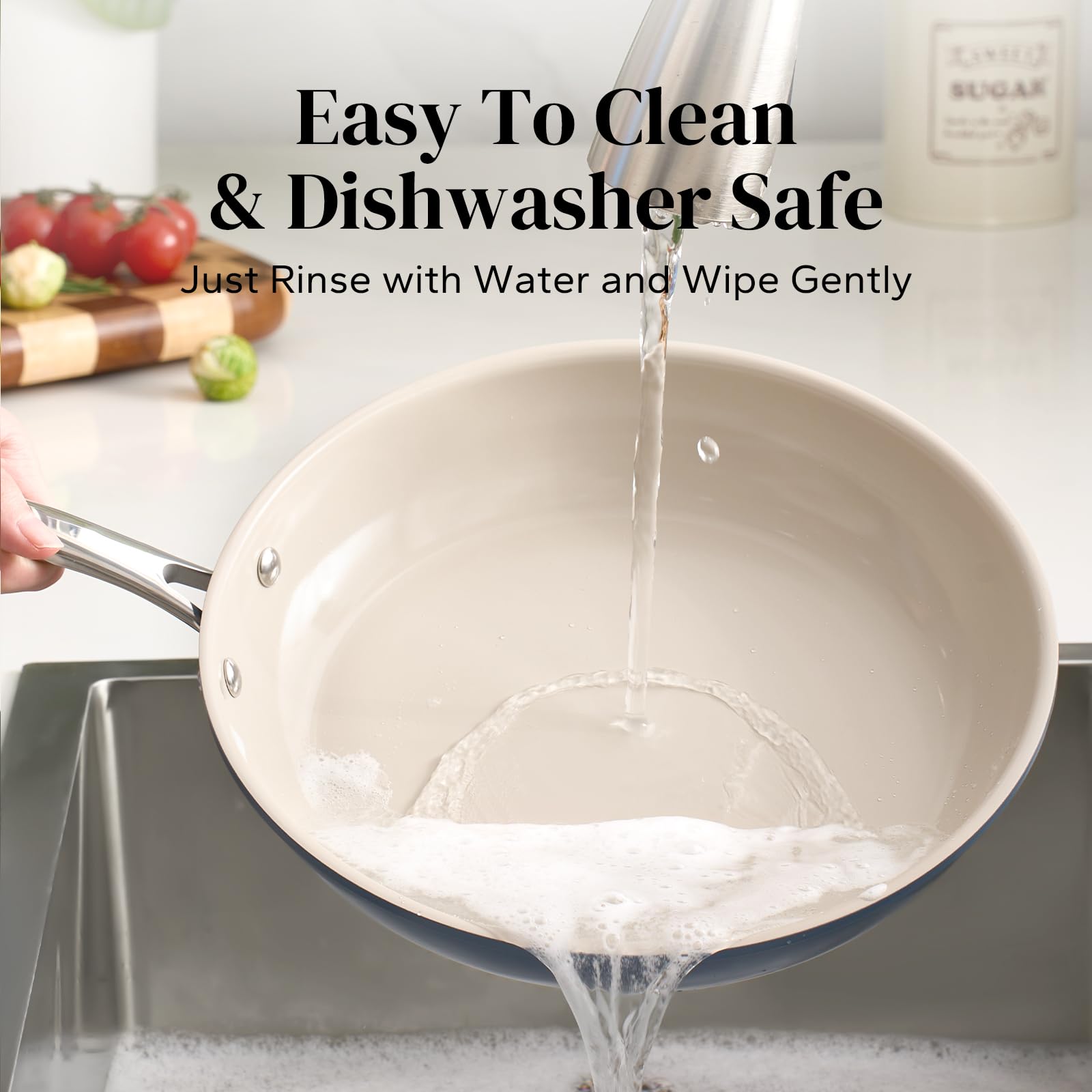 • COOL & STURDY HANDLE: Crafted from lightweight, precision-pressed stainless steel, this ergonomically designed handle ensures a comfortable grip. Double-riveted for exceptional strength and maneuverability, ceramic saute pan empowers you to seamlessly transition from stovetop to oven, allowing you to achieve that flawless sear, brown toppings, or even bake
