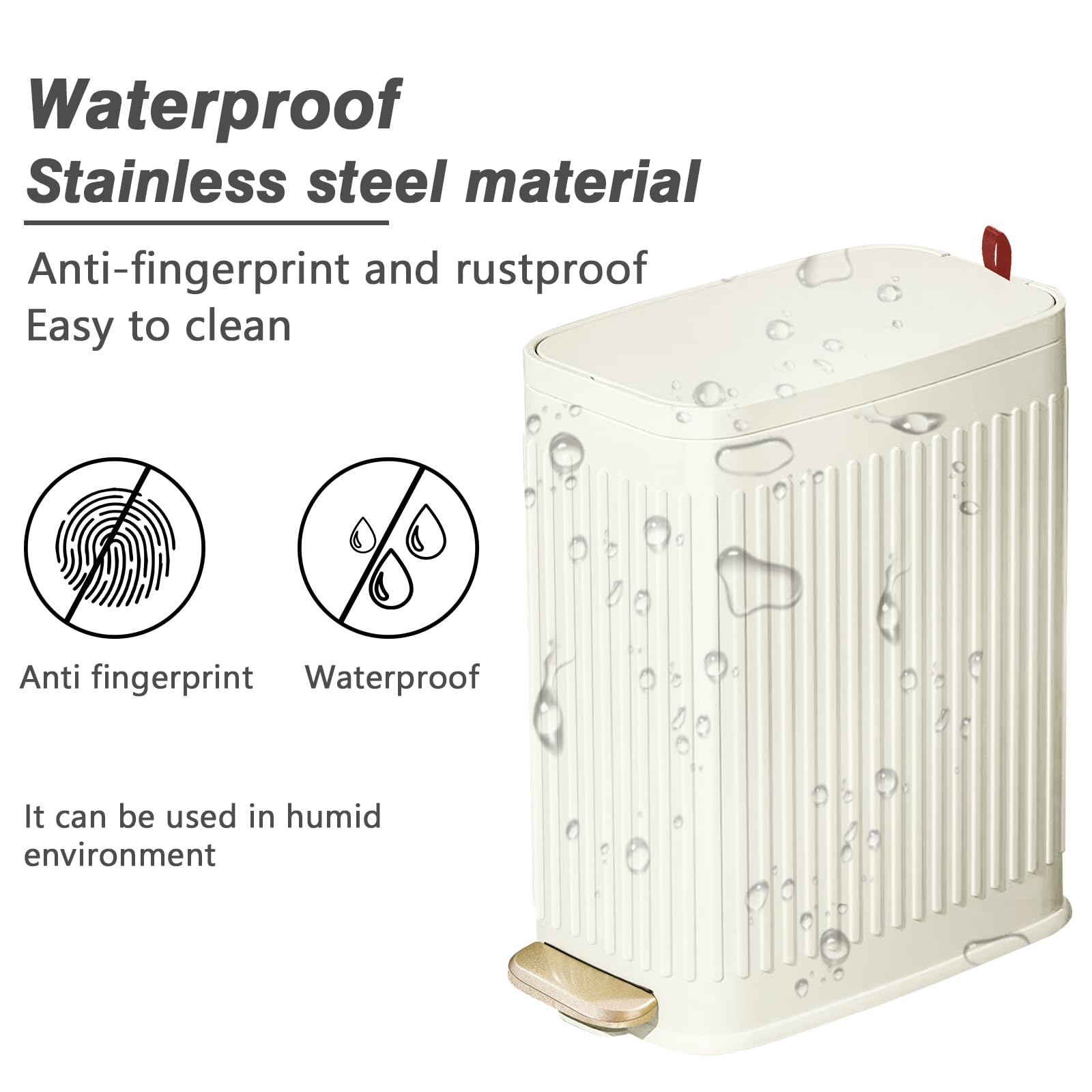 - 🌟 Embossed Metal Surface - Crafted from thick, premium stainless steel, this small bathroom trash can features a truly embossed stripe design that exudes a vintage and elegant charm. Every time you step into your bathroom or kitchen, it's an eye-catcher. Plus, are there accidental stains? Just a gentle swipe of a wet cloth, leaving it looking brand new.
