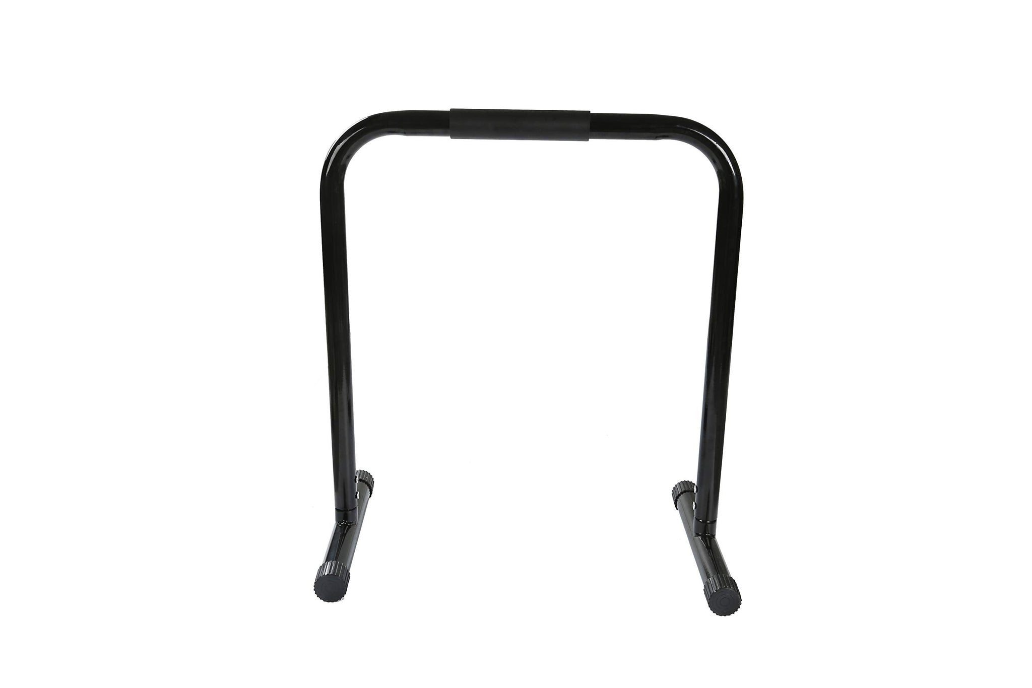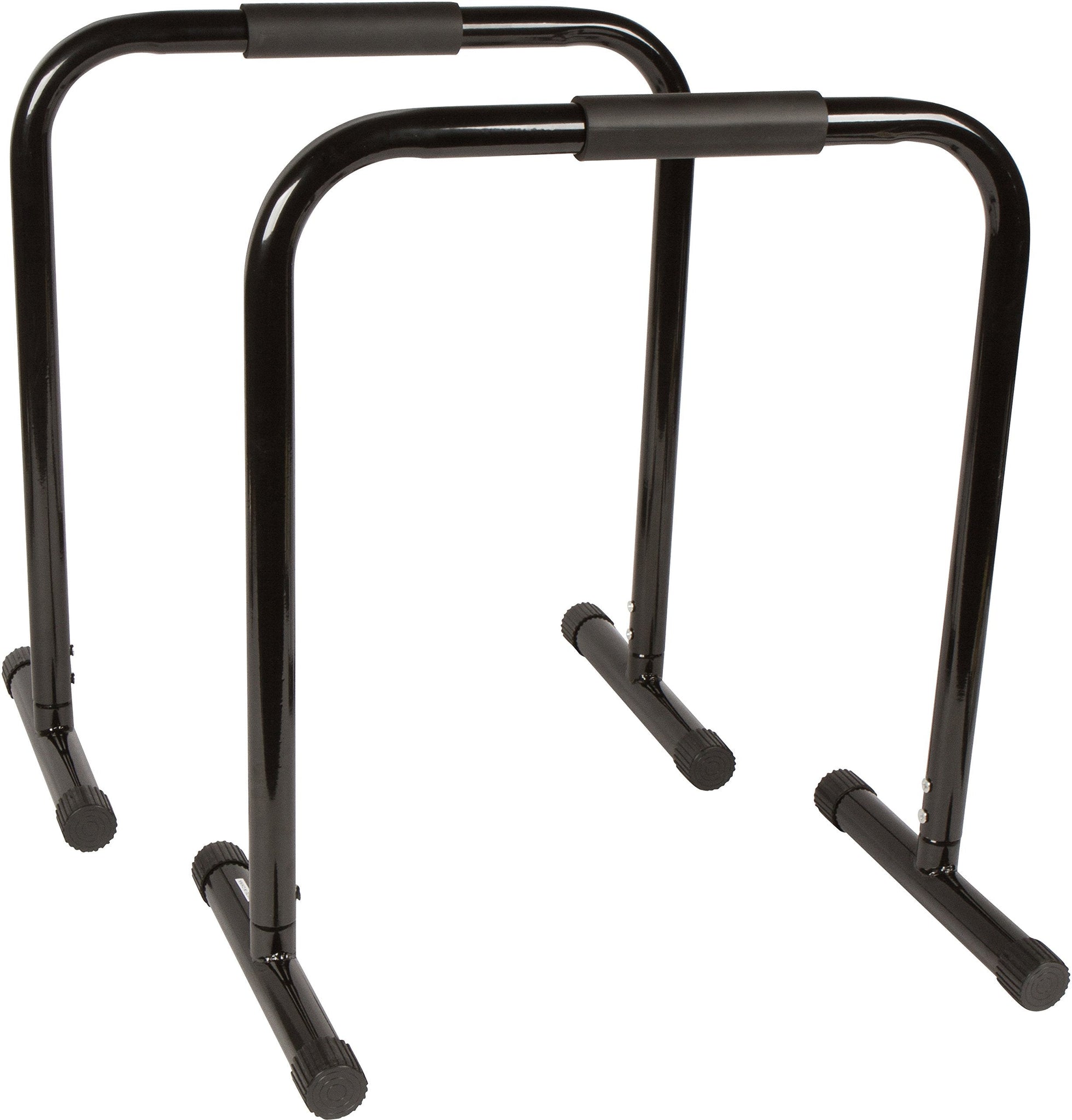 Details: Each dip stand bar measures 14.5"L x 25"w x 28.5"H. Comfortable foam padding for gripping allows for non-slipping of hands. Easy to assemble. A versatile addition to any home gym that helps build strength & stamina. Allows one to use their own weight resistance to build strength. 300lb. User weight capacity. By Trademark Innovations.
