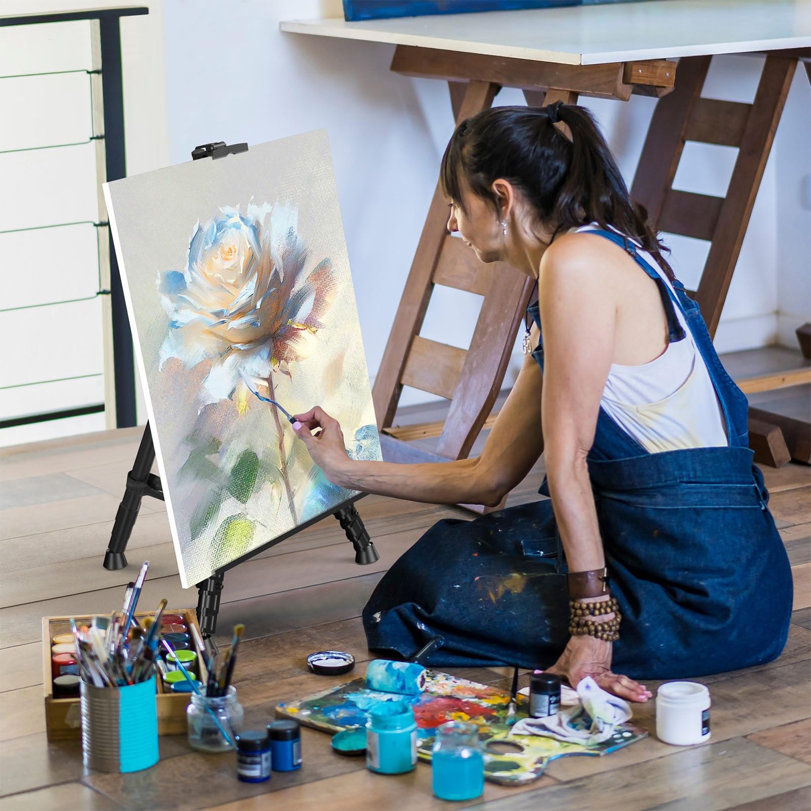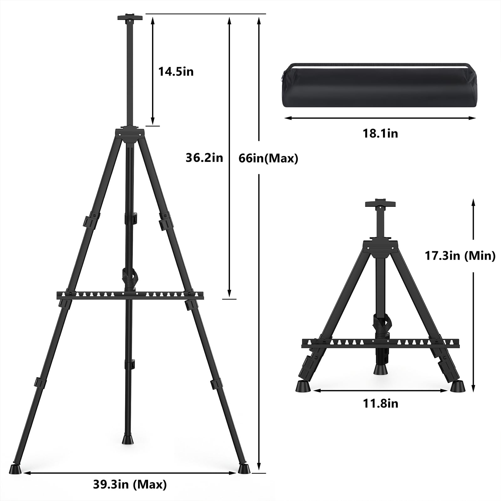 - 【Height Adjustable】The easel for painting can adjust height to accommodate people of different heights, you can use this easel on the table or floor, the adjustment range is 17.3 to 66 inches.