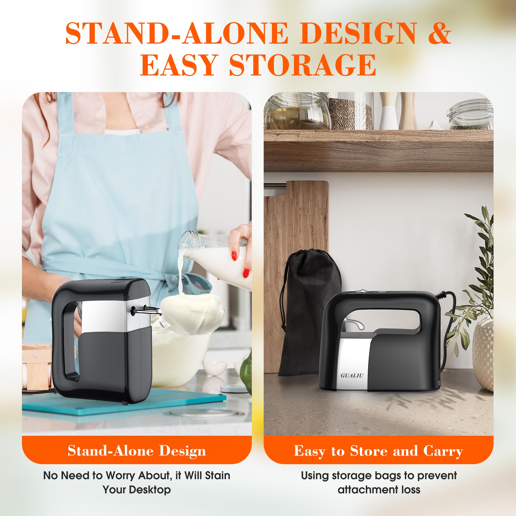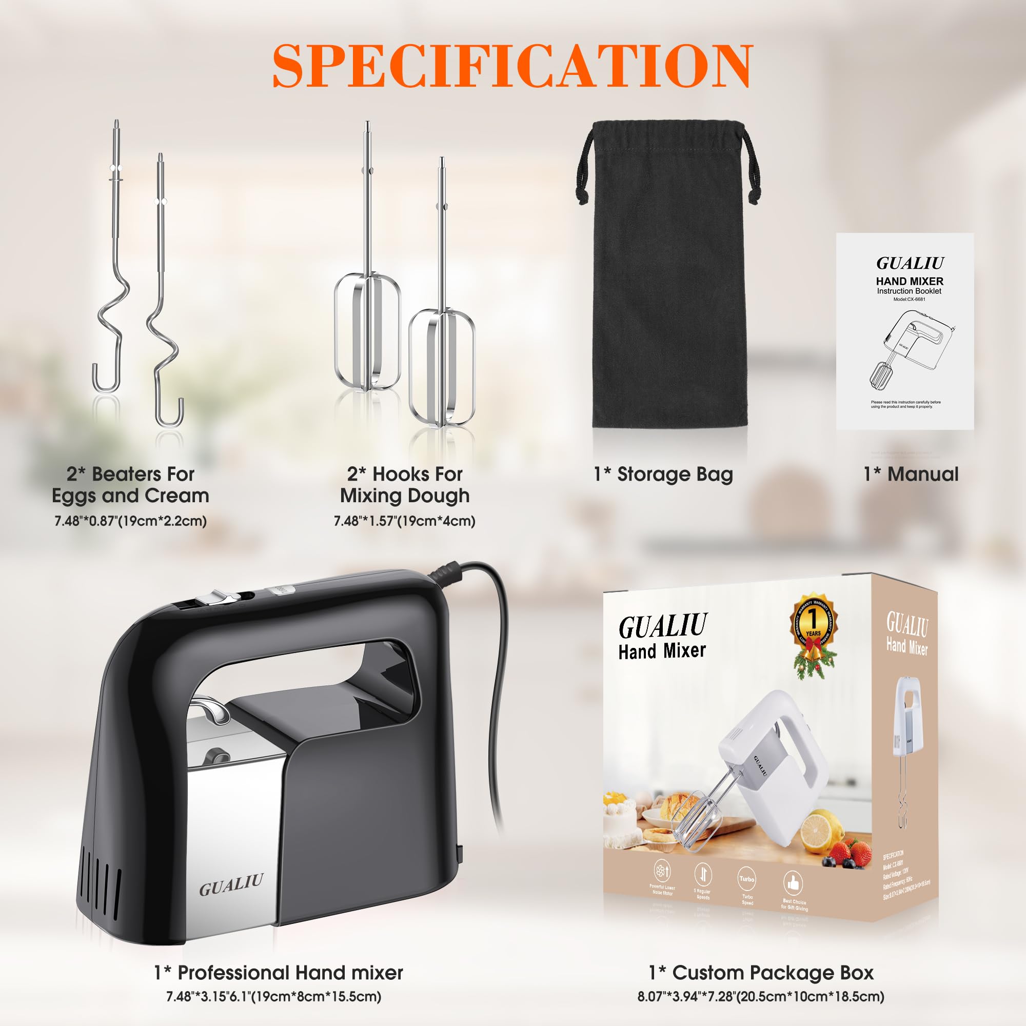 - ๐งใ๐๐๐๐ ๐๐๐ฐ๐ฅ๐ฒ ๐๐ฉ๐ ๐ซ๐๐๐๐ ๐๐ง๐-๐๐ฎ๐ญ๐ญ๐จ๐ง ๐๐ฃ๐๐๐ญ & ๐๐๐ซ๐ ๐ ๐๐ฑ๐ญ๐๐ซ๐ข๐จ๐ซ ๐๐๐ฌ๐ข๐ ๐งใ One-push "Eject" button on the electric hand mixer detaches attachments effortlessly. The large black appearance adds a stylish, warm color to your kitchen. Ergonomic handle ensures a non-tiring grip, perfect for long time use. Also, you can use our food mixer to whip cream, whisk egg whites and more to make cookies, cakes, chocolates, breads, pizzas, etc.
