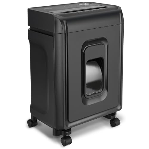 - Crosscut with 10 sheet capacities; shreds credit cards and small paper clips.