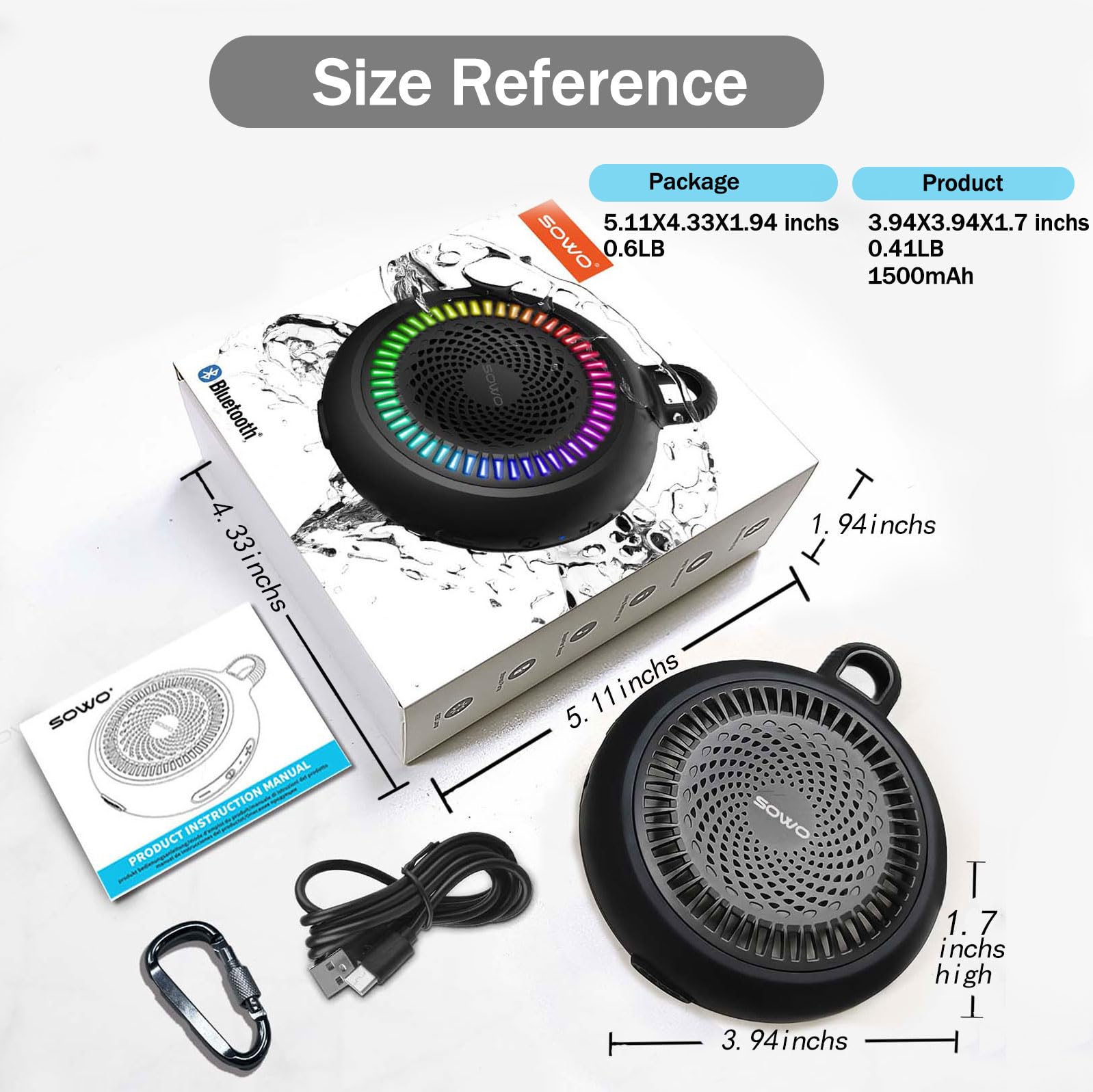 Elevate your shower experience with our Bluetooth Shower Speaker Waterproof. This small portable speaker delivers powerful bass and louder volume, creating a dynamic sound that will energize your day. With colorful lights and a lightweight design, this speaker is not only functional but also stylish. Easily clip it to your shower caddy and enjoy your favorite tunes in the shower. Plus, with TWS pairing, you can double the fun by connecting two speakers for a surround sound experience. Available in sleek black, this speaker is a must-have for music lovers on the go.