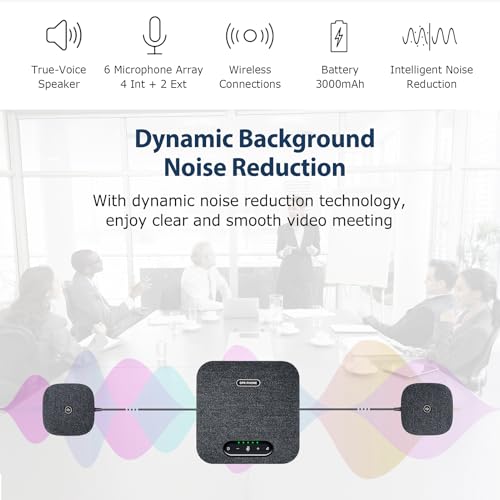 • 【Enhanced Voice Pickup with Noise Reduction】4+2 360° Omnidirectional microphone array picks up voices from all directions to instantly transform any space at home or the office into a meeting room. Larger pick-up range, no need to raise your voices all the time. With intelligent dynamic background noise reduction technology, say goodbye to background noise such as mouse or keyboard clicks, air conditioning noise. Let meeting participants concentrate on the conversation.