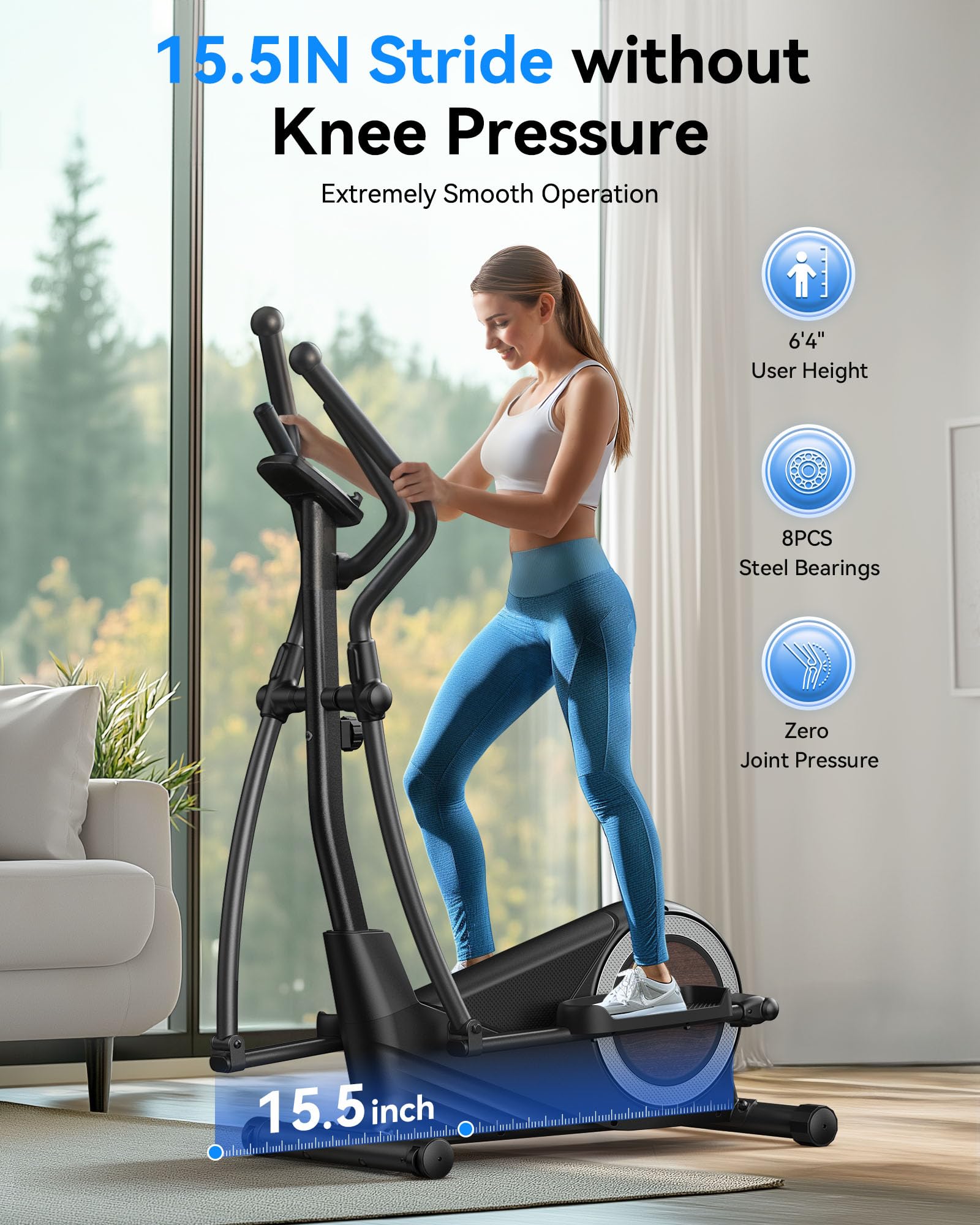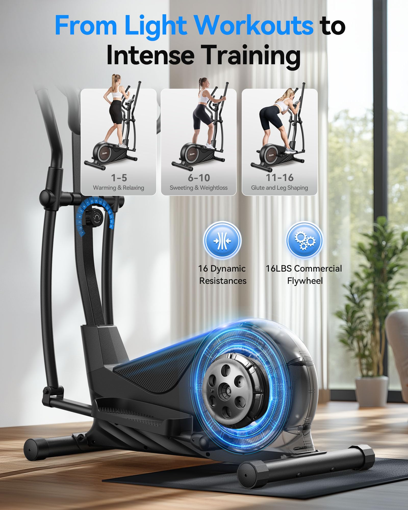Sunny Health & Fitness Heavy-Duty Smart Elliptical Trainer, 300LB Load Equipment for Indoor Cardio Exercise, Adjustable Resistance for Full-Body Cross Training, Free SunnyFit App Bluetooth Connection