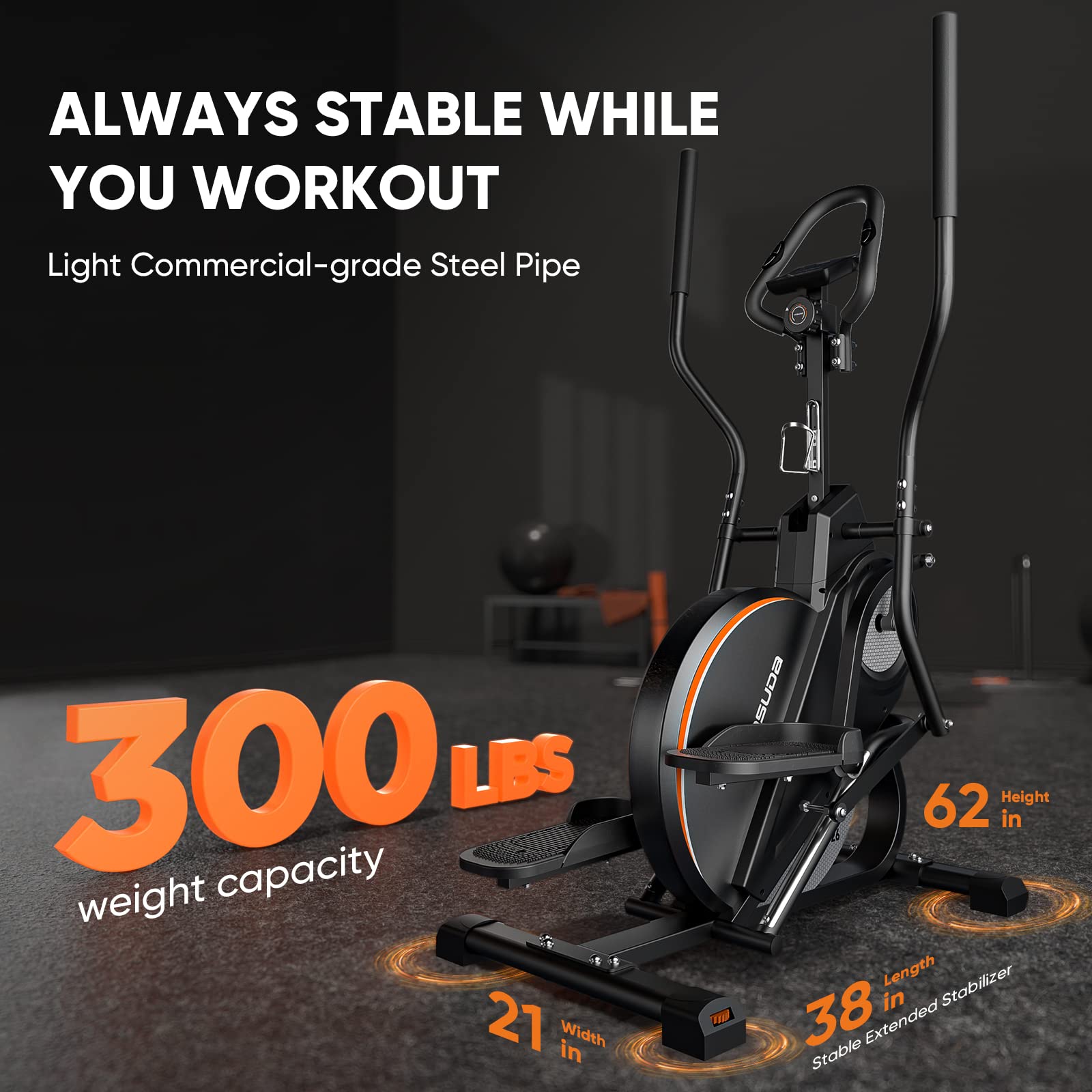 Sunny Health & Fitness Heavy-Duty Smart Elliptical Trainer, 300LB Load Equipment for Indoor Cardio Exercise, Adjustable Resistance for Full-Body Cross Training, Free SunnyFit App Bluetooth Connection