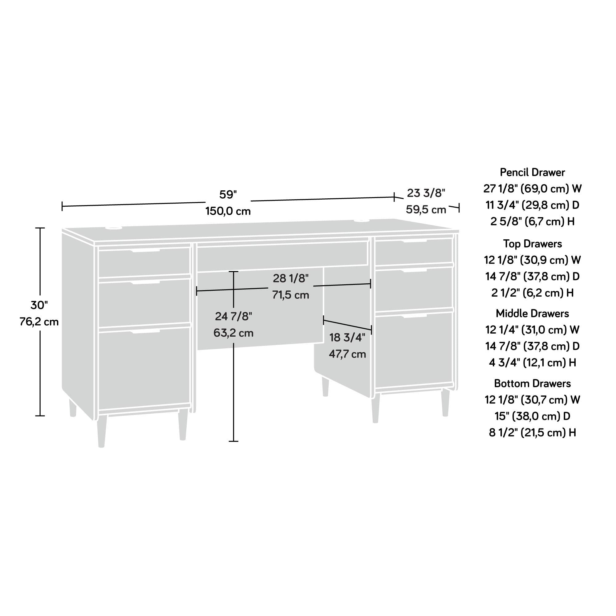 Details: Whether you're looking for a place to get some work done or just need another surface to stack your mounds of paper, this desk from the Clifford Place® collection is perfect for you. This executive desk features a large drawer/shelf with a flip down panel for your keyboard and mouse. The expansive top surface space is perfect for your computer, an accent lamp, photos of your family and your planner. This home office desk includes two file drawers with full extension slides that hold letter-size hanging files, keeping your most important documents organized. Four additional storage drawers with metal runners and safety stops make this wood executive desk ideal for holding sticky notes, pens, a stapler and more. Nobody likes a cluttered desk—that's why this desk with storage features two desktop grommet holds that allow a convenient path for cables and cords. With solid wood feet and a Grand Walnut® finish, this home office desk is the next great addition to your home.