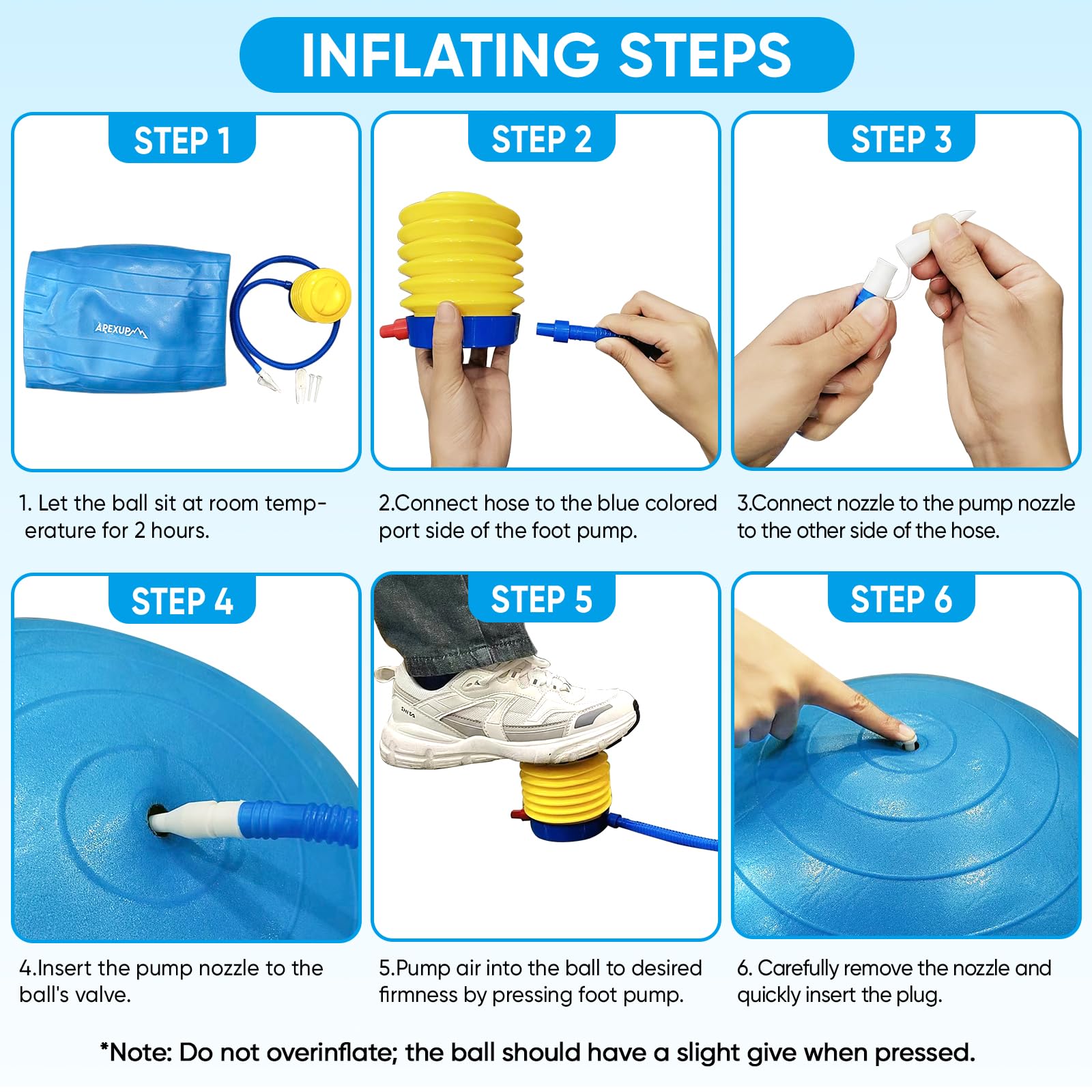 • [SAFE AND ANTI BURST] APEXUP Exercise ball is made of high-quality, eco-friendly PVC material, which meets stringent safety standards. It's non-toxic, odorless, and free from harmful heavy metals. With an anti-burst honeycomb structure, it ensures durability and safety during your workouts.