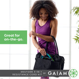 - 3-in-1 Resistance Exercise Band - The Gaiam Restore resistance band kit features 3 interchangeable resistance cords for progressive intensity as you get stronger with easy-adjust clips to add or remove bands for desired resistance levels.