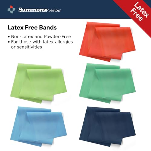 Sammons Preston Resistance Bands for Working Out, Non-Latex Exercise Bands, Resistance Bands for Physical Therapy, Improve Strength & Flexibility, Stretch & Tone Major Muscles, 5pk