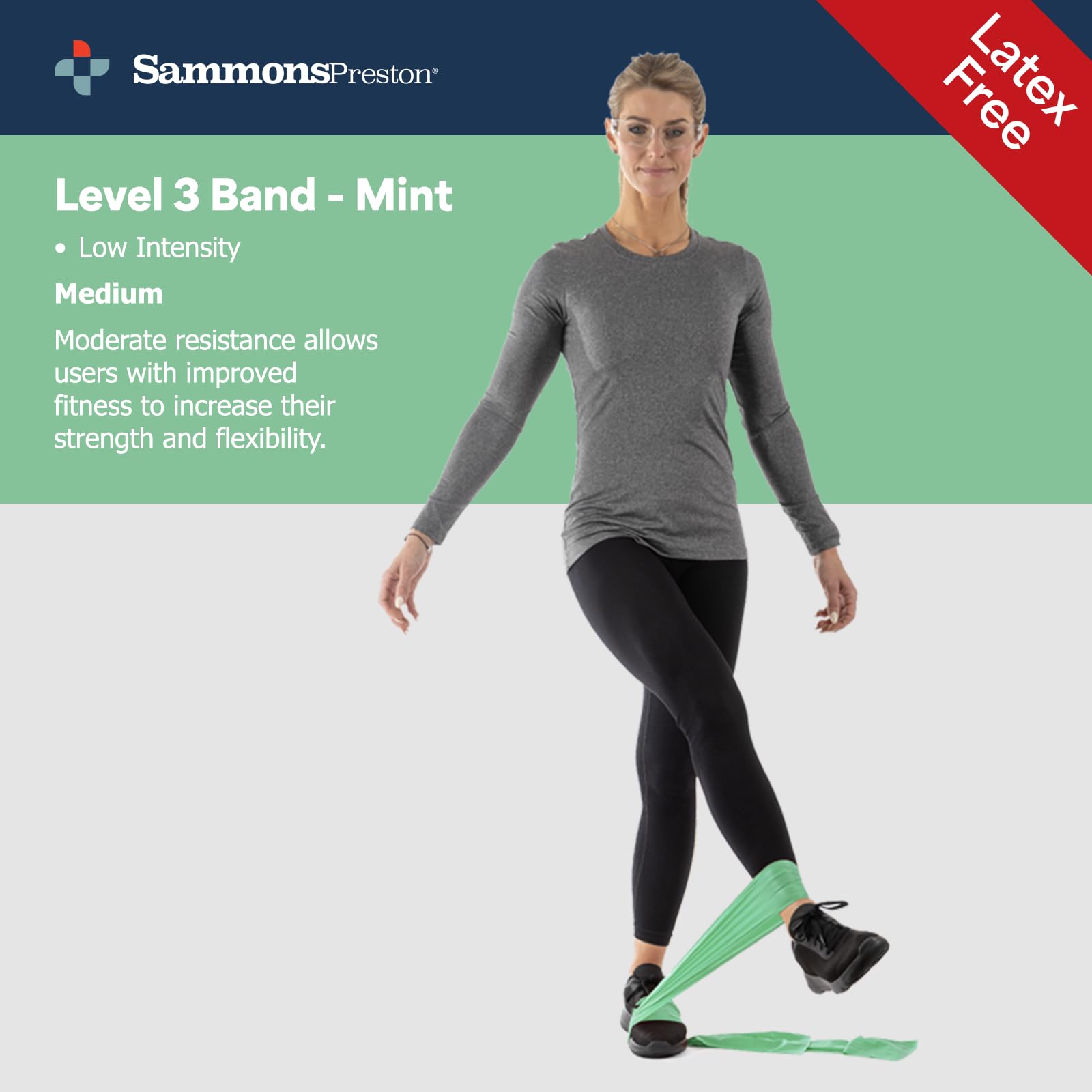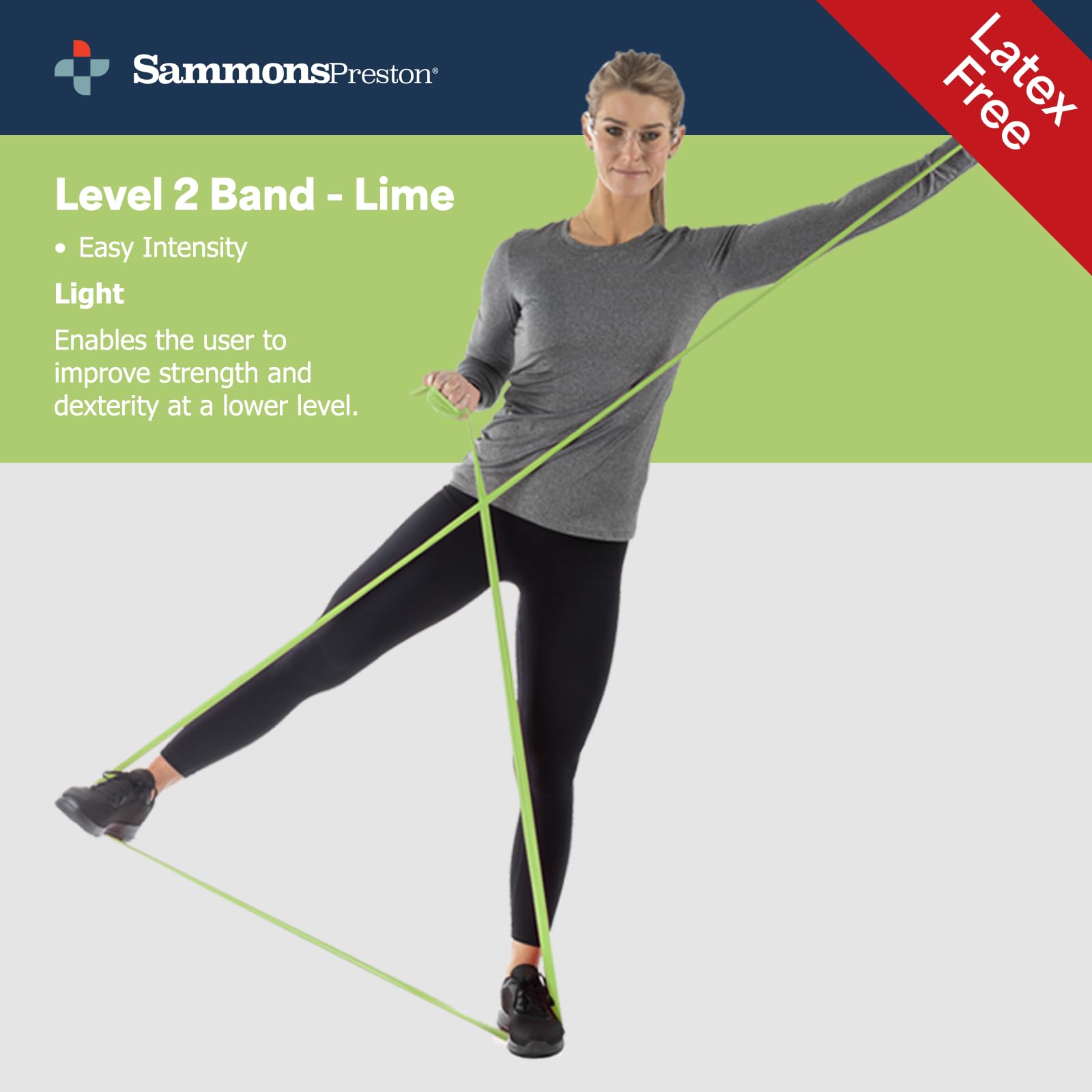 • Each band is 5' long x 4" wide and includes all five bands from level-1 extra light, level-2 light, level-3 medium, level-4 heavy, and level 5-extra heavy.