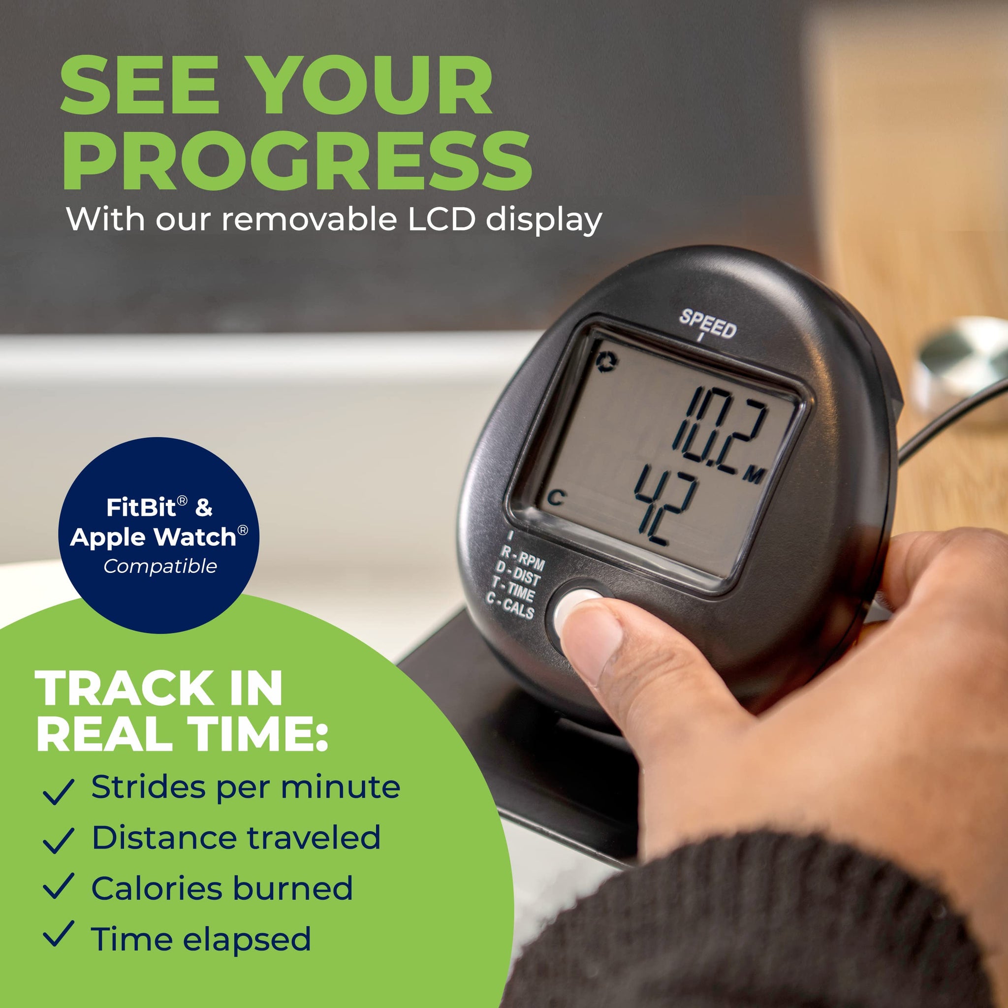 - TRACK YOUR PROGRESS: Our detachable LCD display records rotations per minute, distance traveled, calories burned, and time elapsed. Use the compatible DeskCycle Bluetooth Sensor to connect with your phone or fitness device.