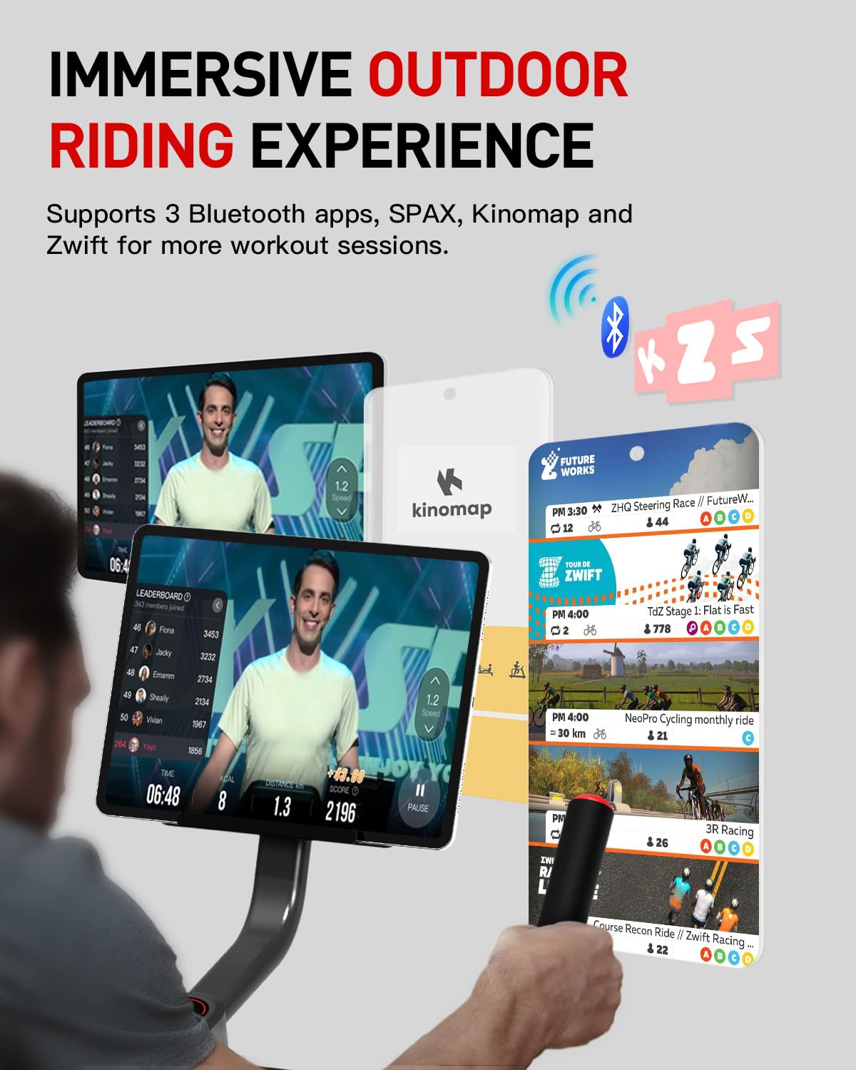 - Support Fitness APP: With a built-in sensor,this cardio stationary bike support multiple fitness app,which can track your real-time sports data,such as time,speed,RPM,distance and calorie. These fitness apps offer a variety of exercise courses, enabling you to personalize your workout plan and add entertainment to your fitness routine
