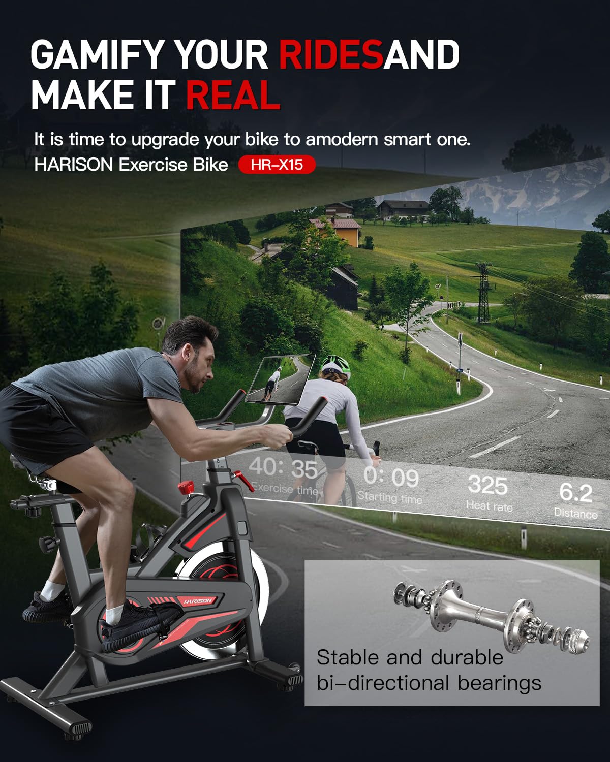 - Exercise Bike for Home with 350 LBS Capacity: HARISON stationary bike with bluetooth HR-X15BP features a heavy-duty steel frame, providing maximum stability with a weight capacity up to 350 lbs. High-quality welding and materials prevent wobbling or shaking during vigorous pedaling. This cycling bike is engineered to be the perfect choice for intense workout sessions: Triangle frame ensures stability during riding. It can hold up to 350 pounds, providing you with a safe and stable experience. Suitable for all fitness levels