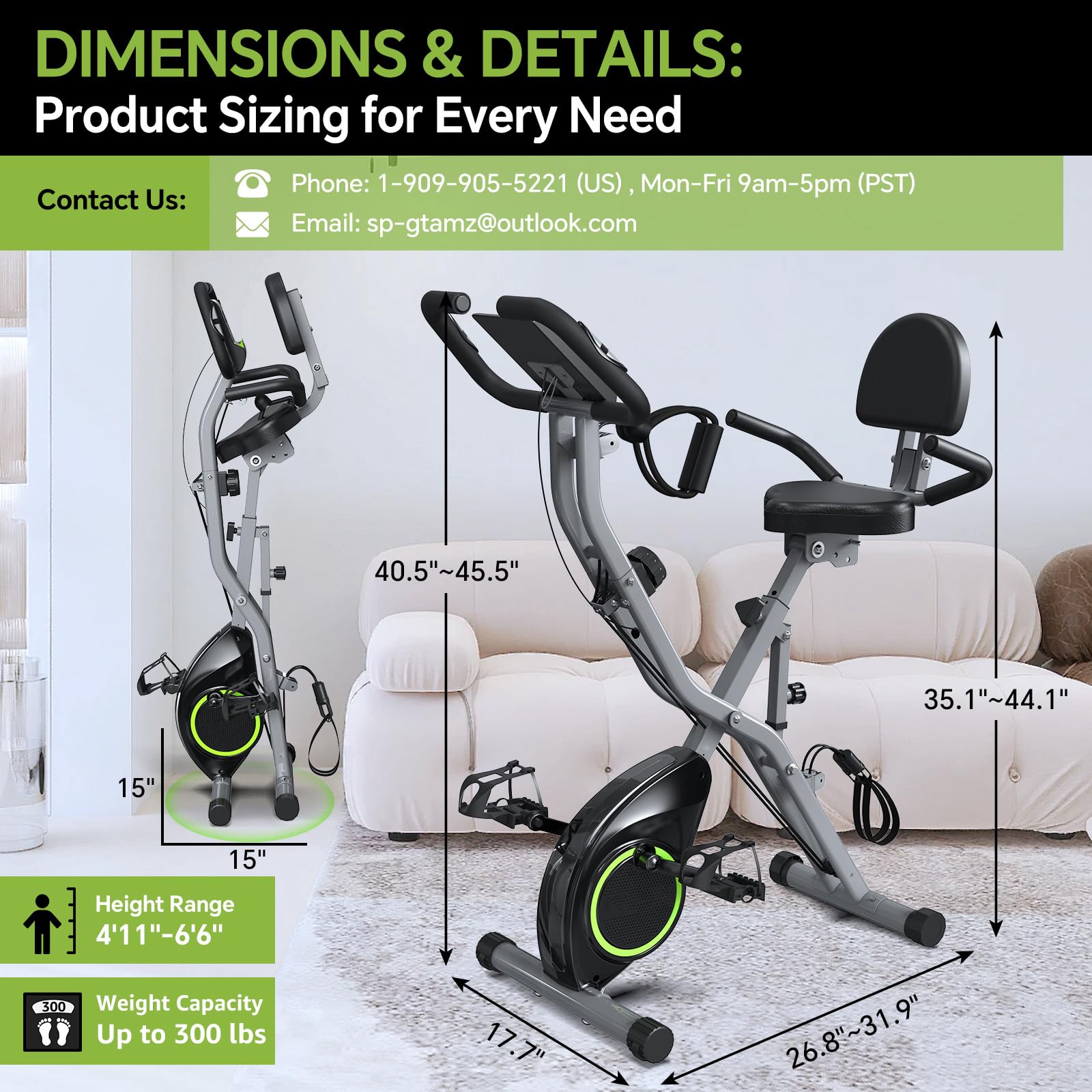 BARWING Stationary Exercise Bike for Home Workout, 5 IN 1 Foldable Indoor Cycling Bike for Seniors, 350LB Capacity, 16-Level Magnetic Resistance, Seat Backrest Adjustments