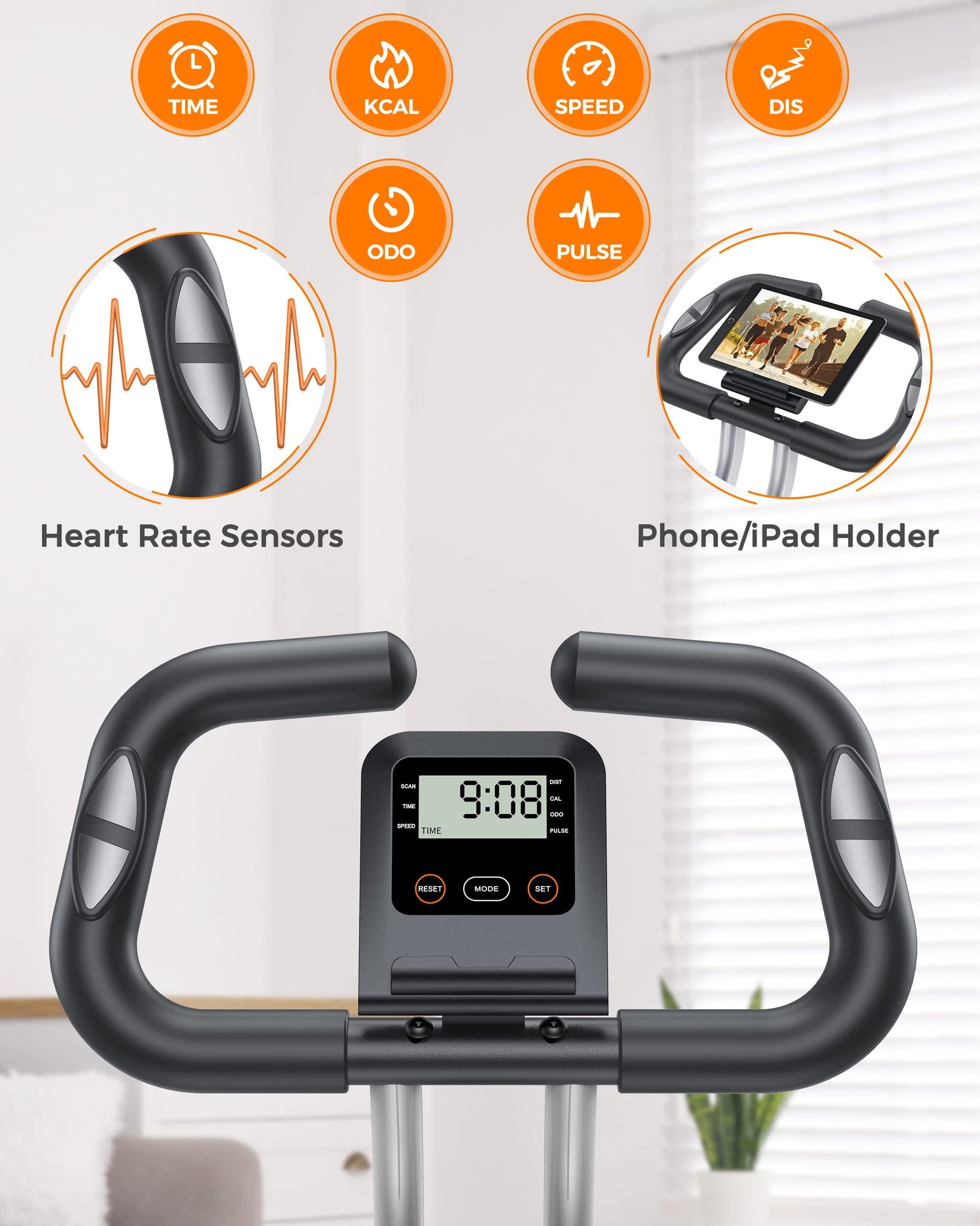 BARWING Stationary Exercise Bike for Home Workout, 5 IN 1 Foldable Indoor Cycling Bike for Seniors, 350LB Capacity, 16-Level Magnetic Resistance, Seat Backrest Adjustments