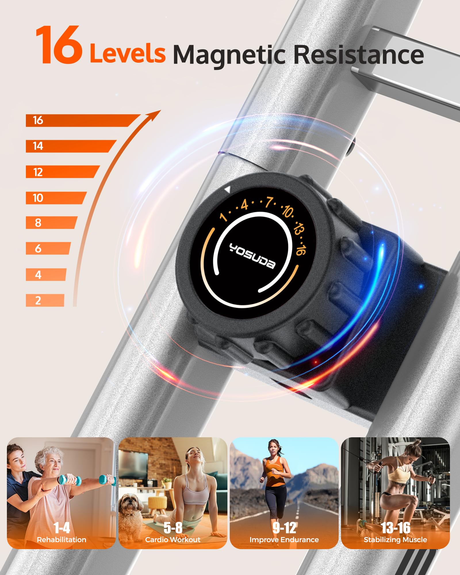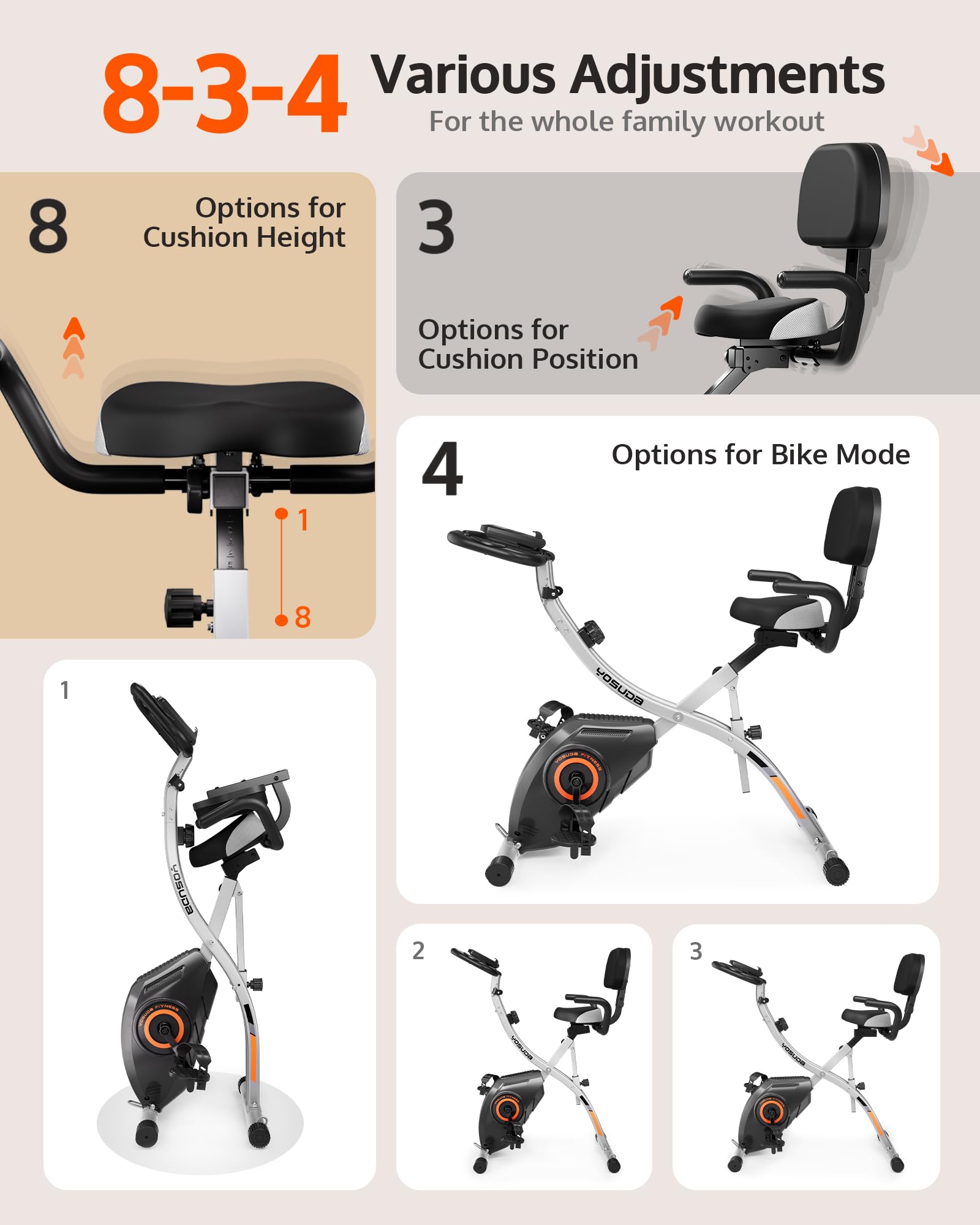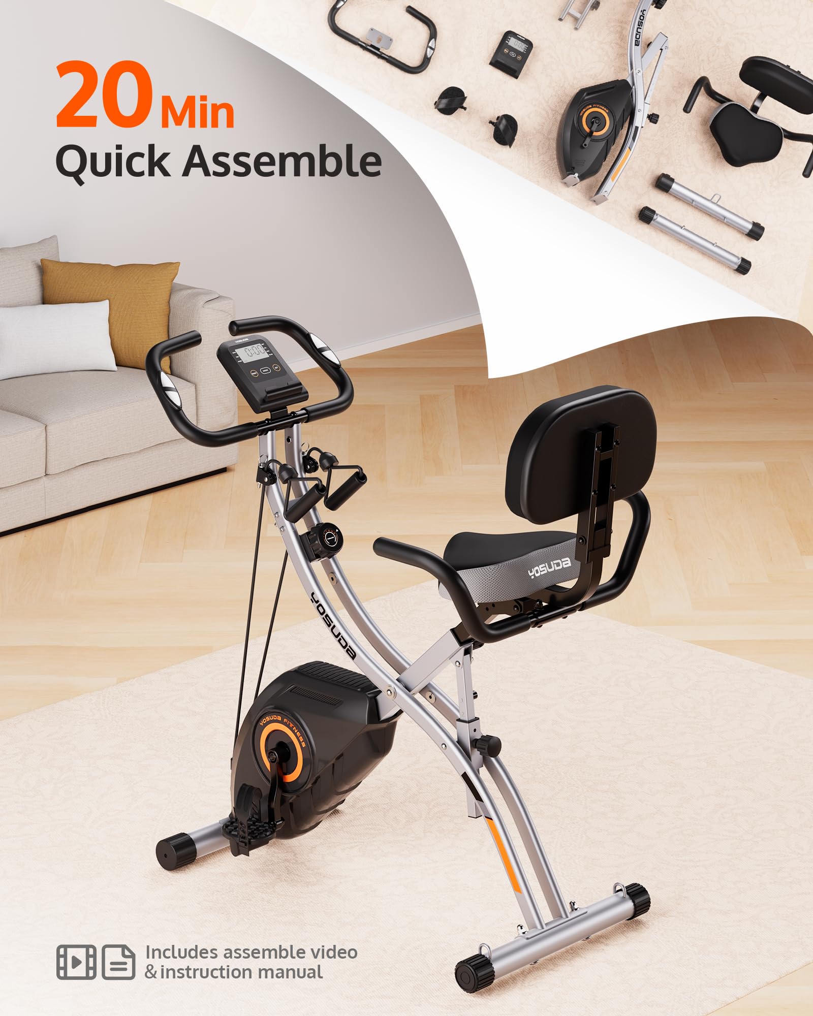 BARWING Stationary Exercise Bike for Home Workout, 5 IN 1 Foldable Indoor Cycling Bike for Seniors, 350LB Capacity, 16-Level Magnetic Resistance, Seat Backrest Adjustments