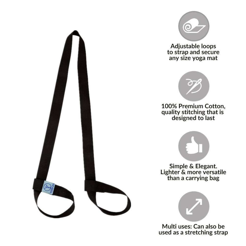- ✔RELIABLE DURABLE AND COMFORTABLE: Made of 3mm thick, 1.5 inch width premium polyester cotton and stitched twice than other brand straps. it means yoga mat straps are more durable soft and comfort than others for carrying .