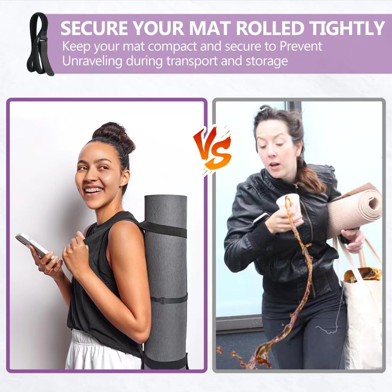 Upgrade your yoga practice with our advanced yoga mat strap designed for superior hold and durability. Say goodbye to slipping mats with our yoga mat strap featuring magic tape tie fasteners that keep your mat securely in place during transport.