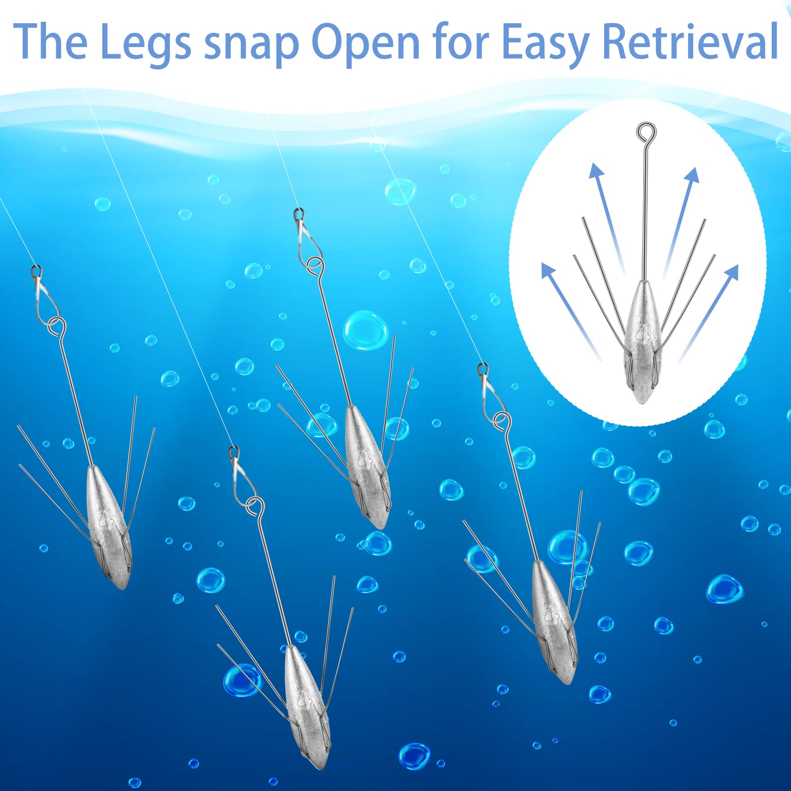 - Considerate Design: with the design of 4 stainless steel legs, the surf fishing sinker can stand firmly in the sand, not easy to fall down, and it is suitable for long distance throwing, easy to use