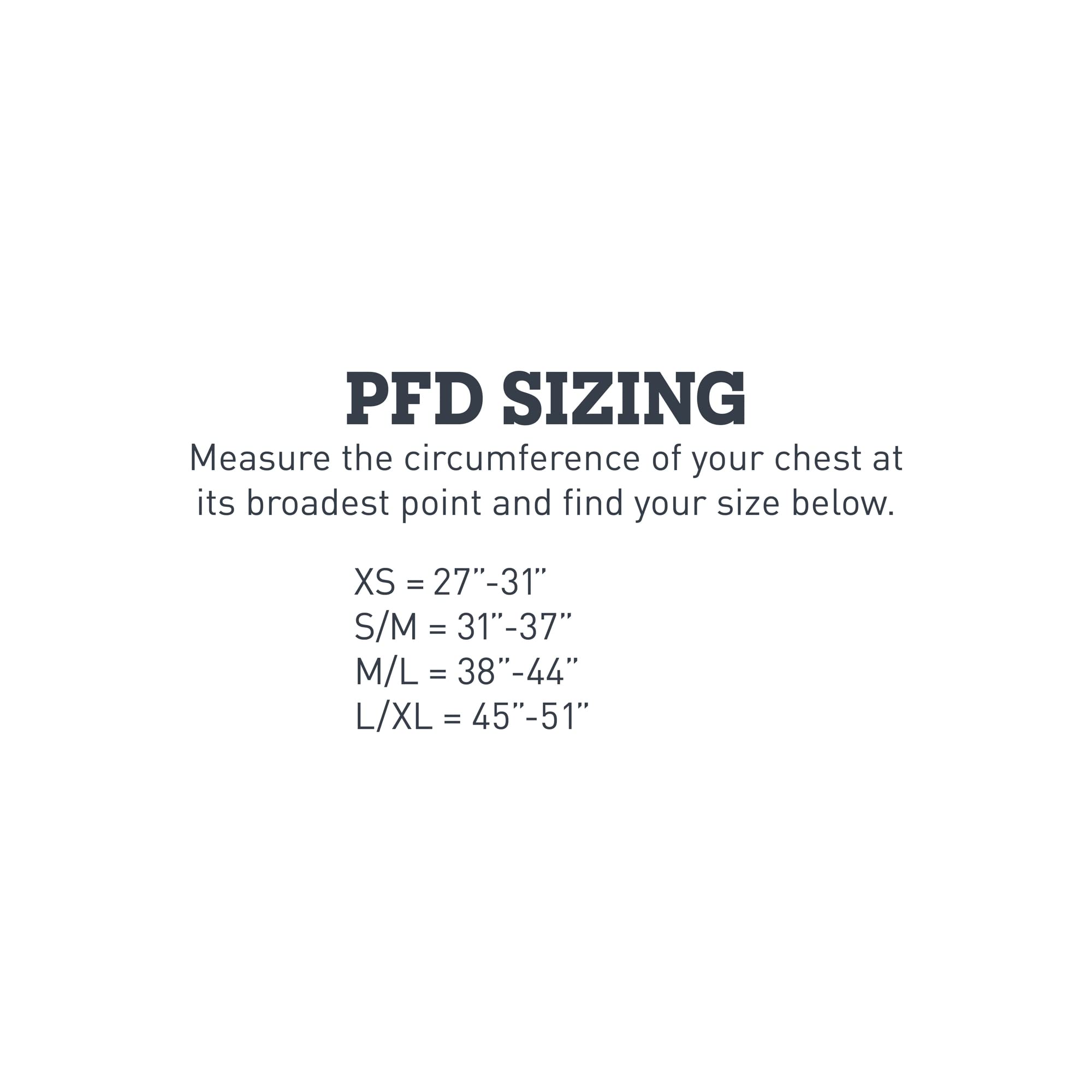 Details: Fishing PFDs commonly include many pockets. It can get confusing what is where, and the pockets create obstacles for the rod handle. We consolidated five pockets into one large centralized place. The result is a streamlined yet highly organizable PFD, for more efficient fishing.Measure your chest and find your size.Small/Medium: 31-37”Medium/Large: 38-44”Large/X-Large: 45-51”