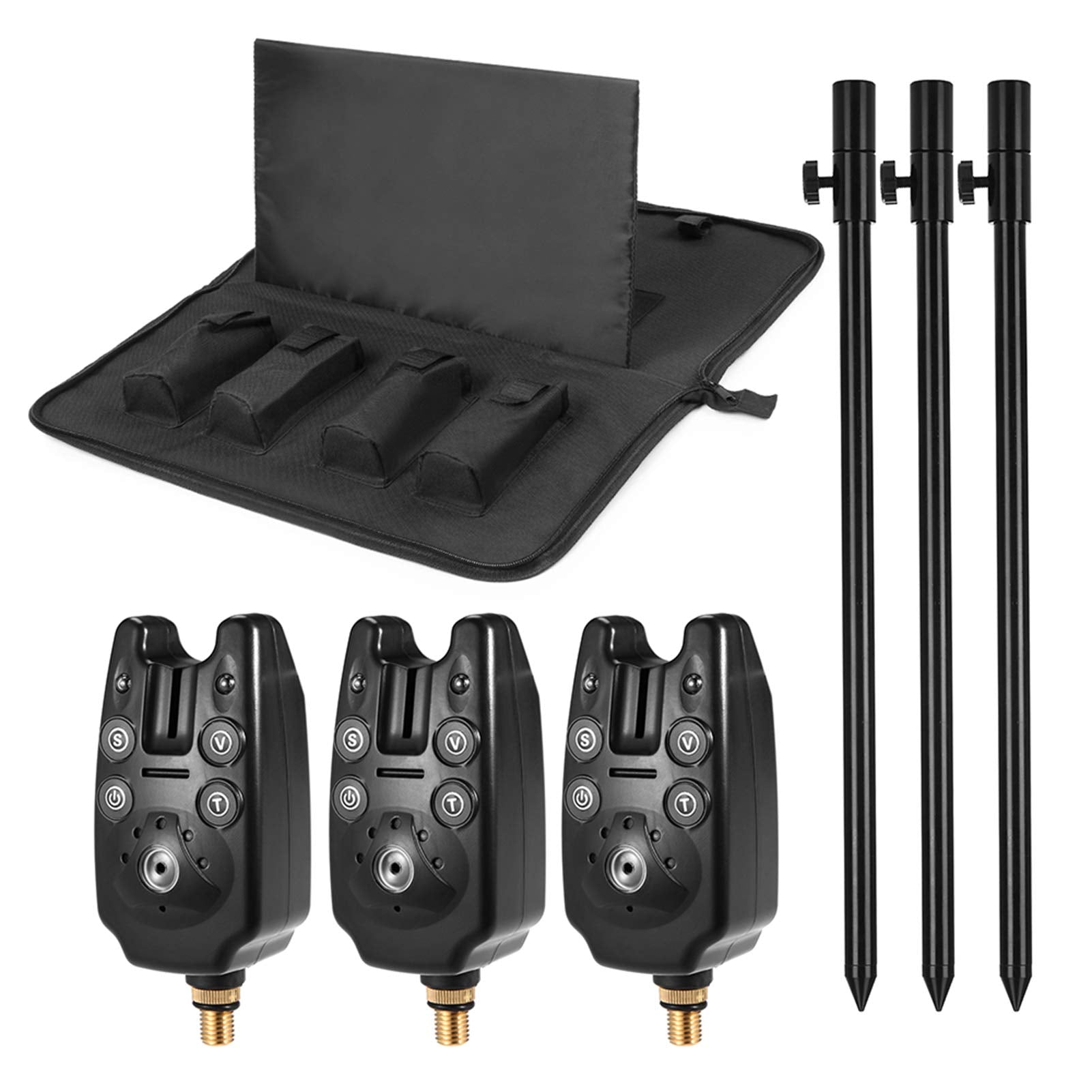 - 【Best Fishing Kits】Portable fishing bag can pack your fishing tools, just take it and go! It is the best fishing kits for your freshwater fishing, saltwater fishing adventures, travel, camping and more.NOTE: (Set 1: 3* Fishing Bite Alarm & 3* Fishing Bankstick & 1* Fishing Bag)(Set 2: 3* Fishing Bite Alarm & 3* Fishing Bankstick & 3* Fishing Swinger & 1* Fishing Tool Bag)